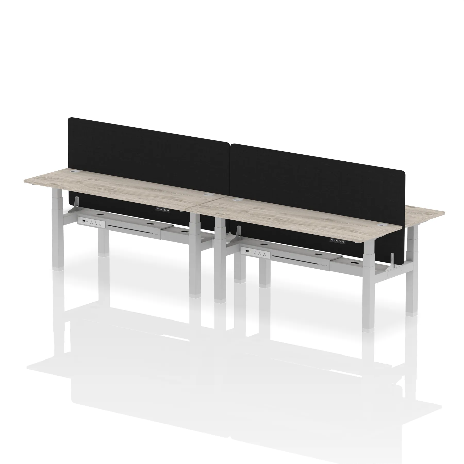 Air Back-to-Back Slimline Height Adjustable Bench Desk – 4 Person with Black Straight Screen