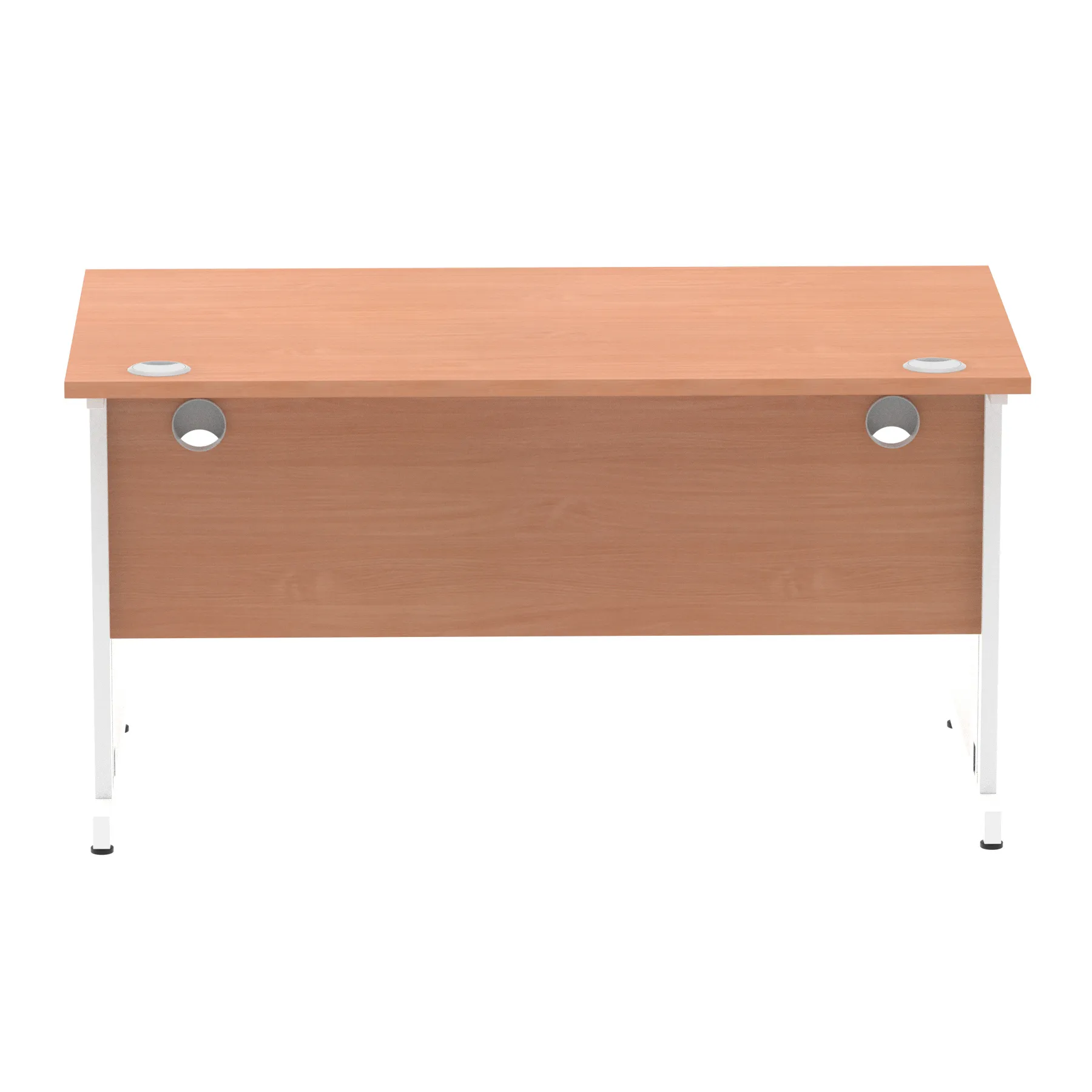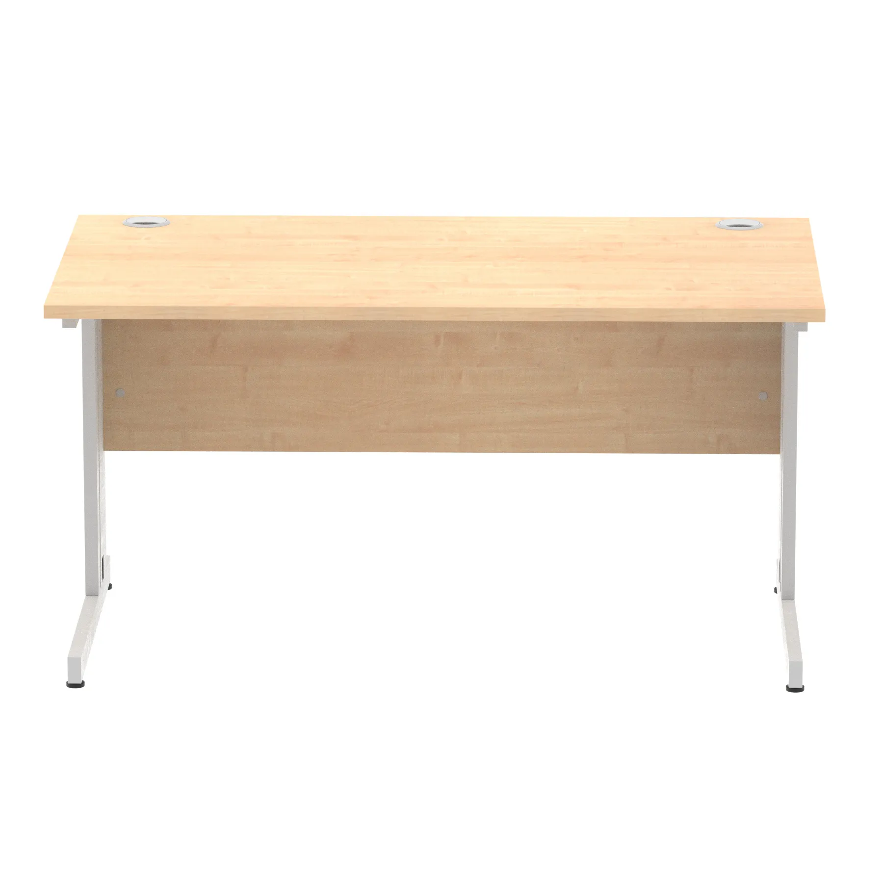 Impulse contract desk | 25mm tops | wire management panel | Heat resistant melamine finish | 18mm modesty panel | 2mm protective abs edging | Silver coated double strut legs | 2 cable ports | Height adjustable feet | Steel to steel fixings | 2 modesty panel slots | Deep set modesty panel (5″) allows for compatibility of most screen clamp fittings | Weight Capacity 135Kg