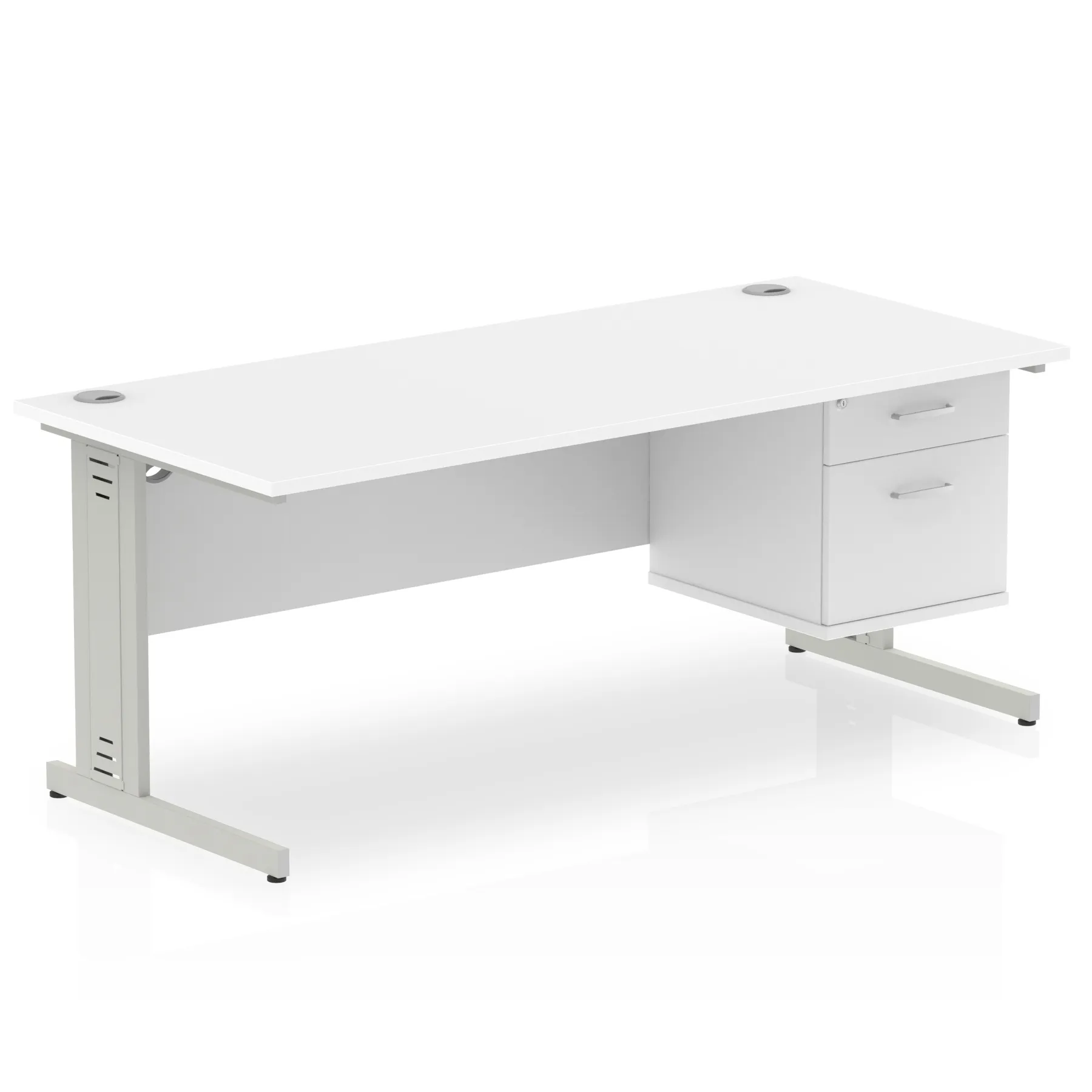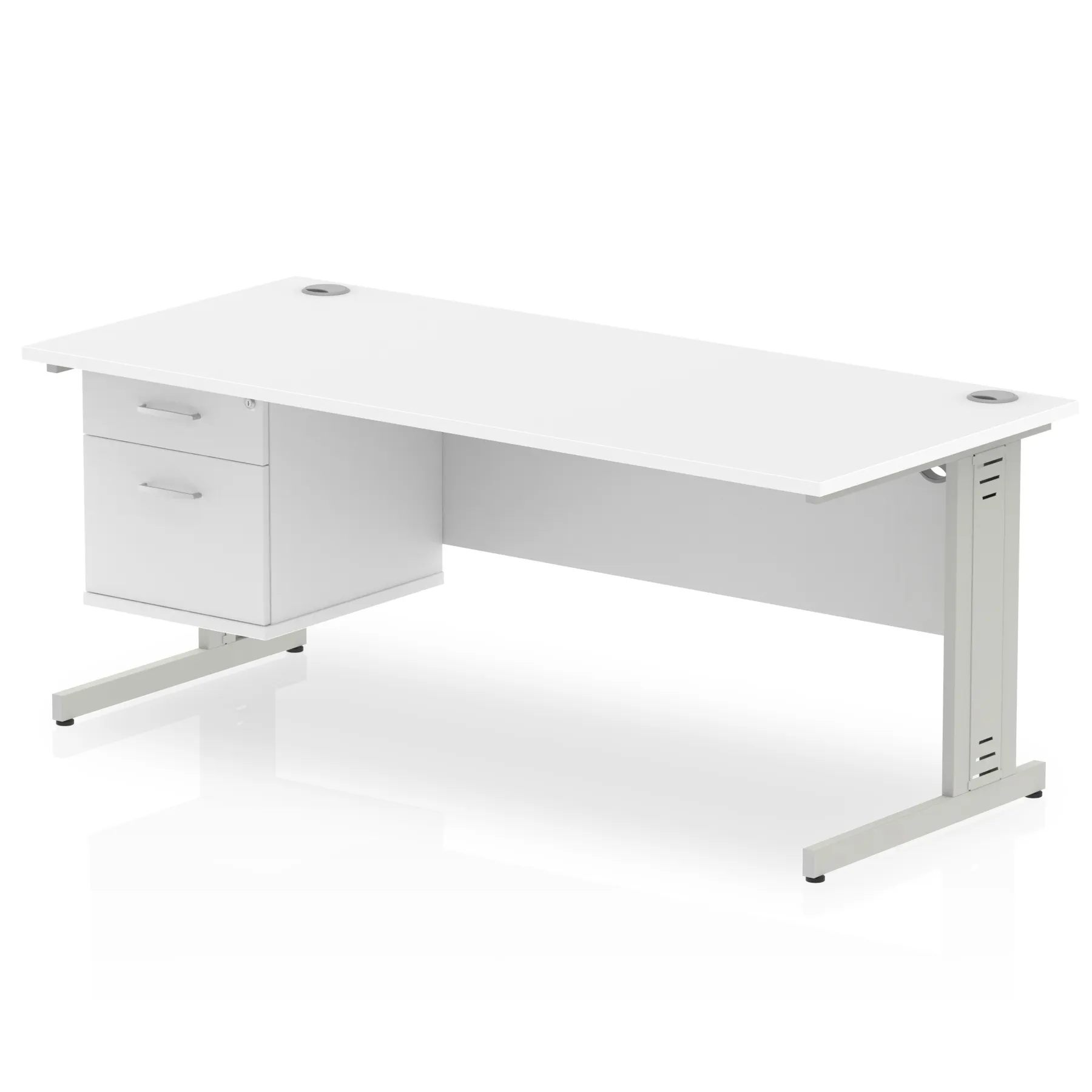 Impulse 1800mm Cable Managed Straight Desk With Single Fixed Pedestal