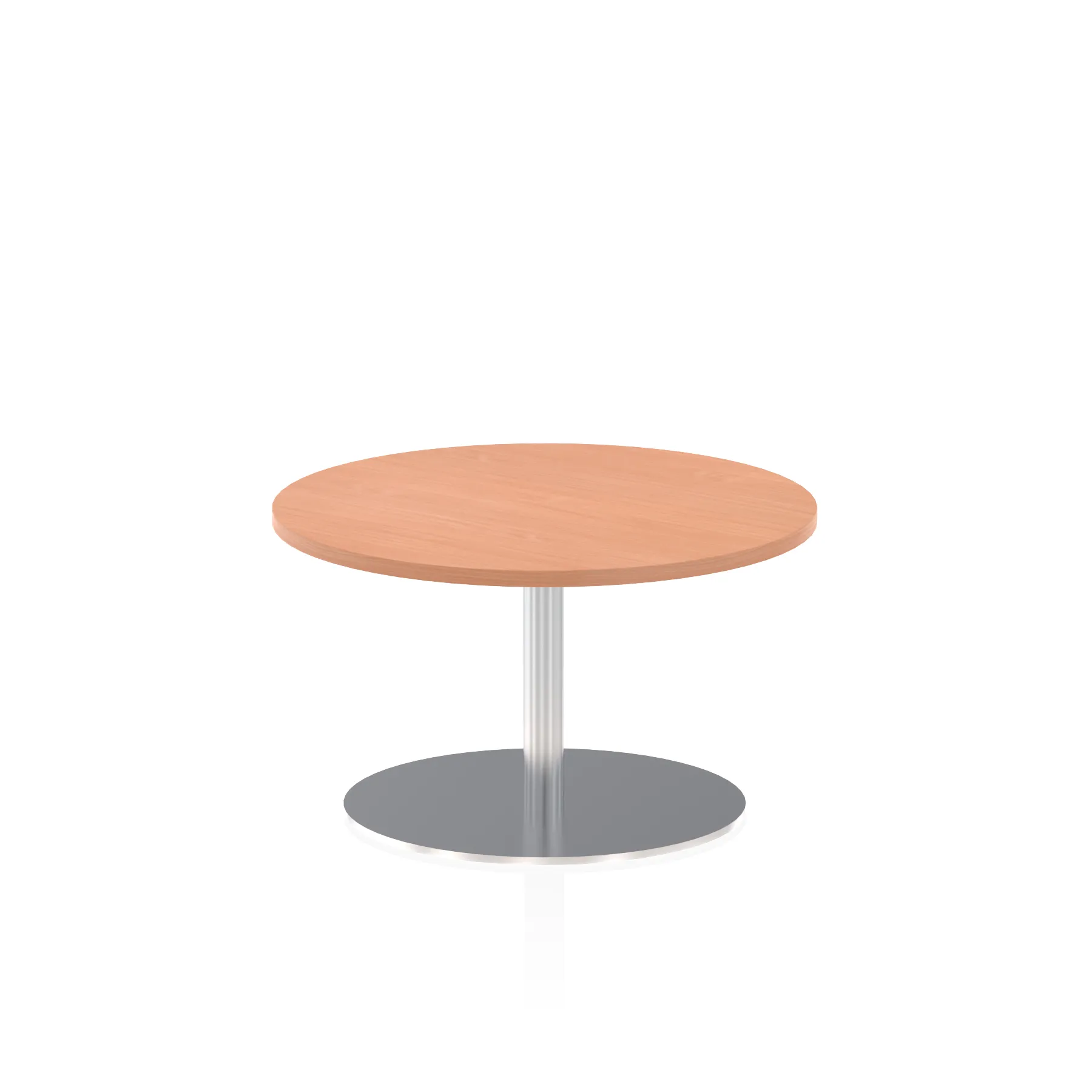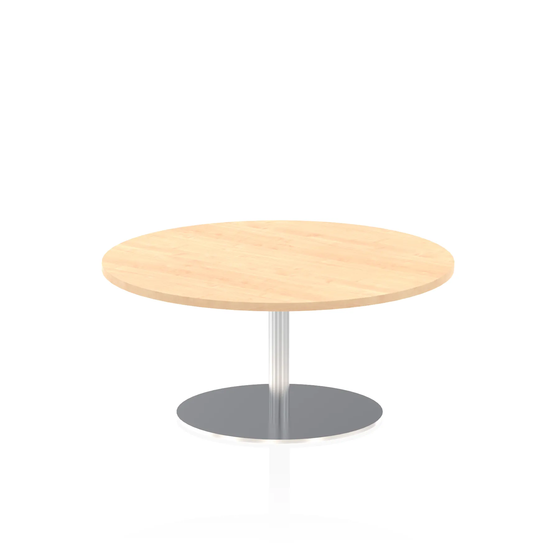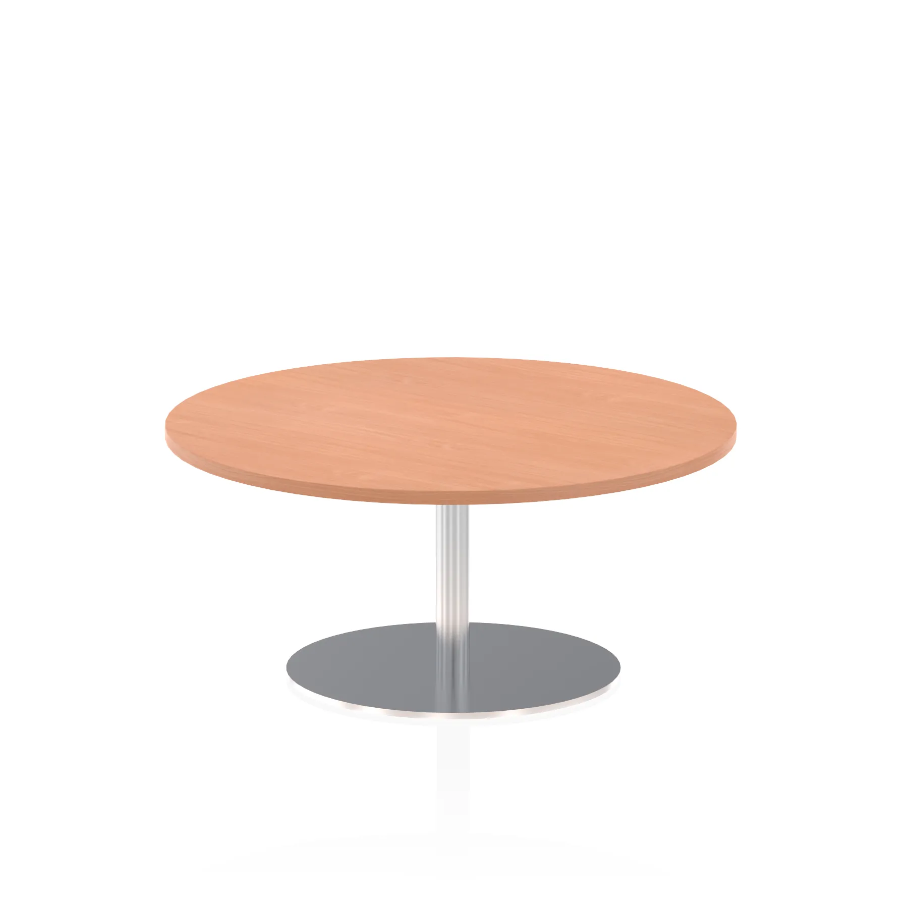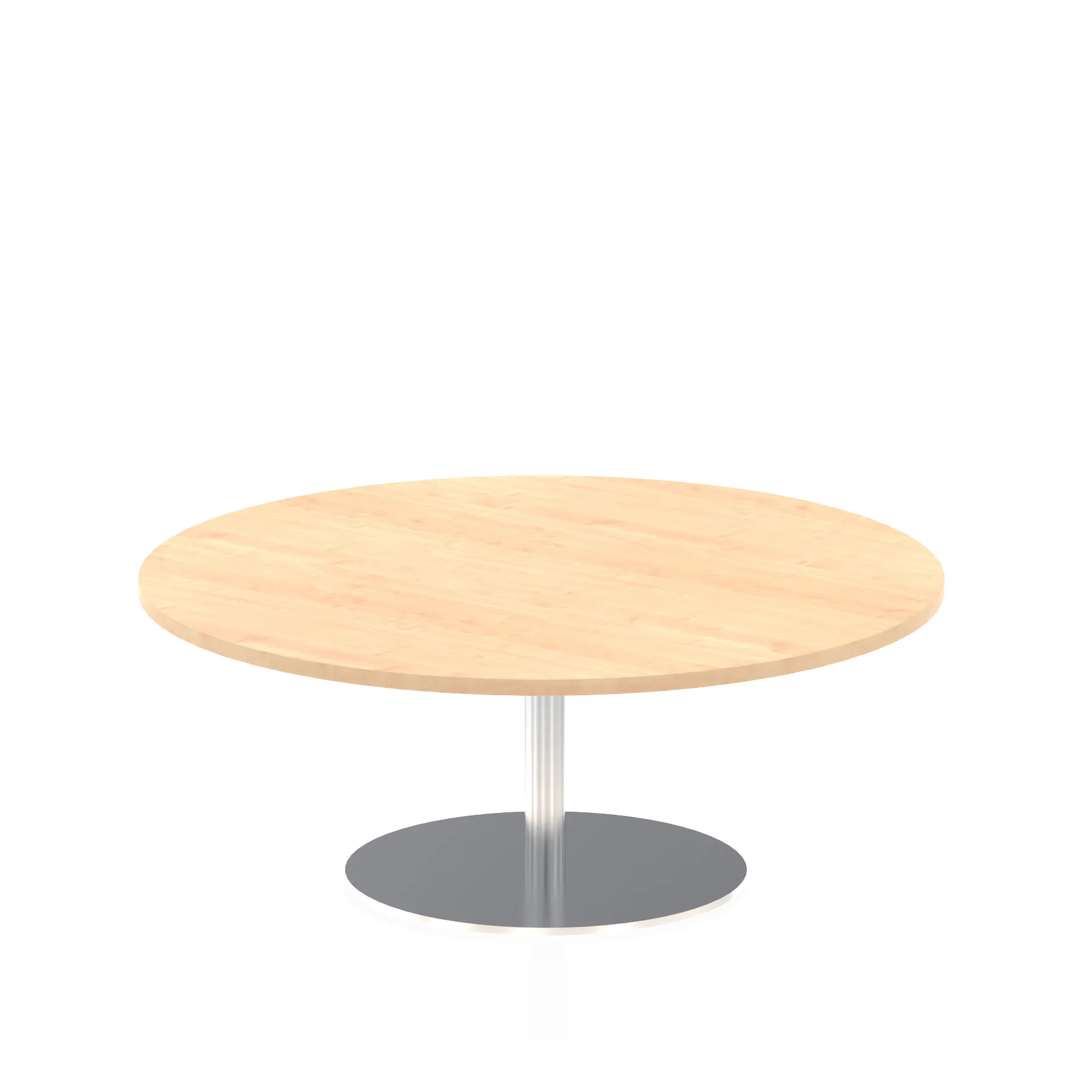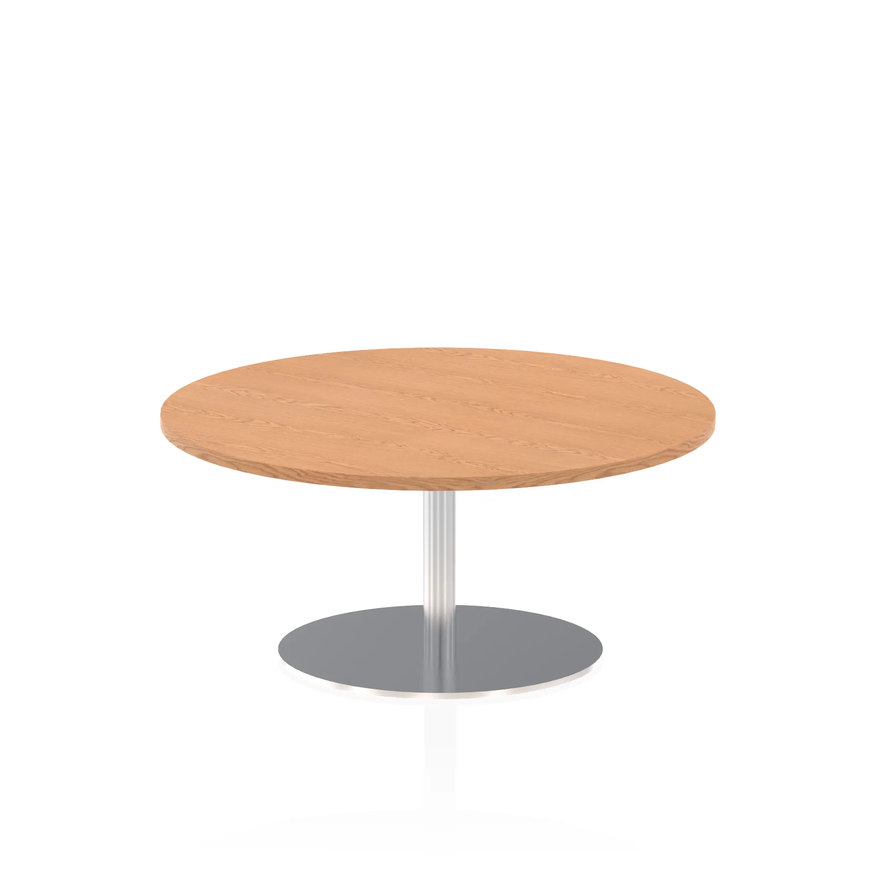 25mm thick desk top profile | Brushed stainless steel effect circular base (580mm diameter) | Brushed stainless steel pillars (76mm diameter) | Weighted base provides stability | Two part bolted frame system
