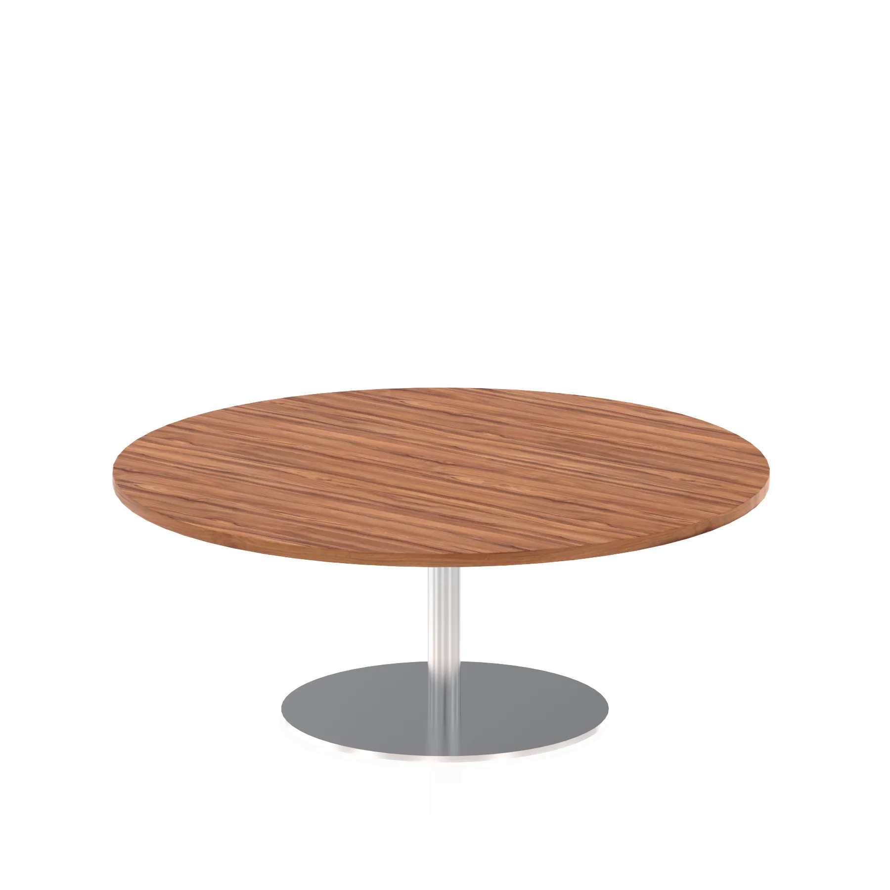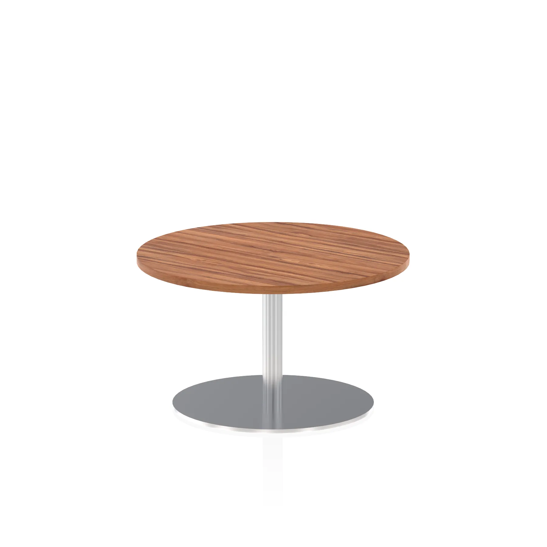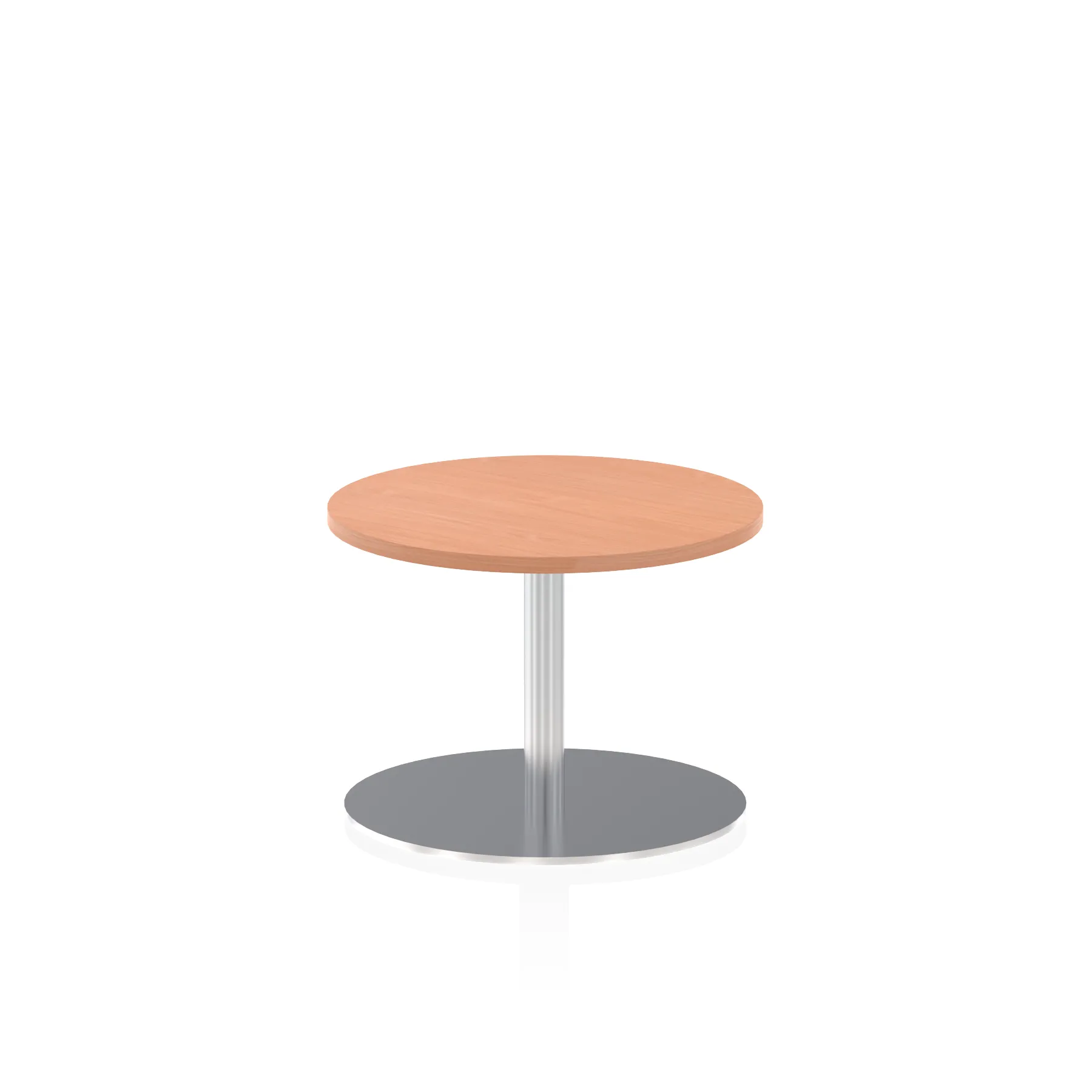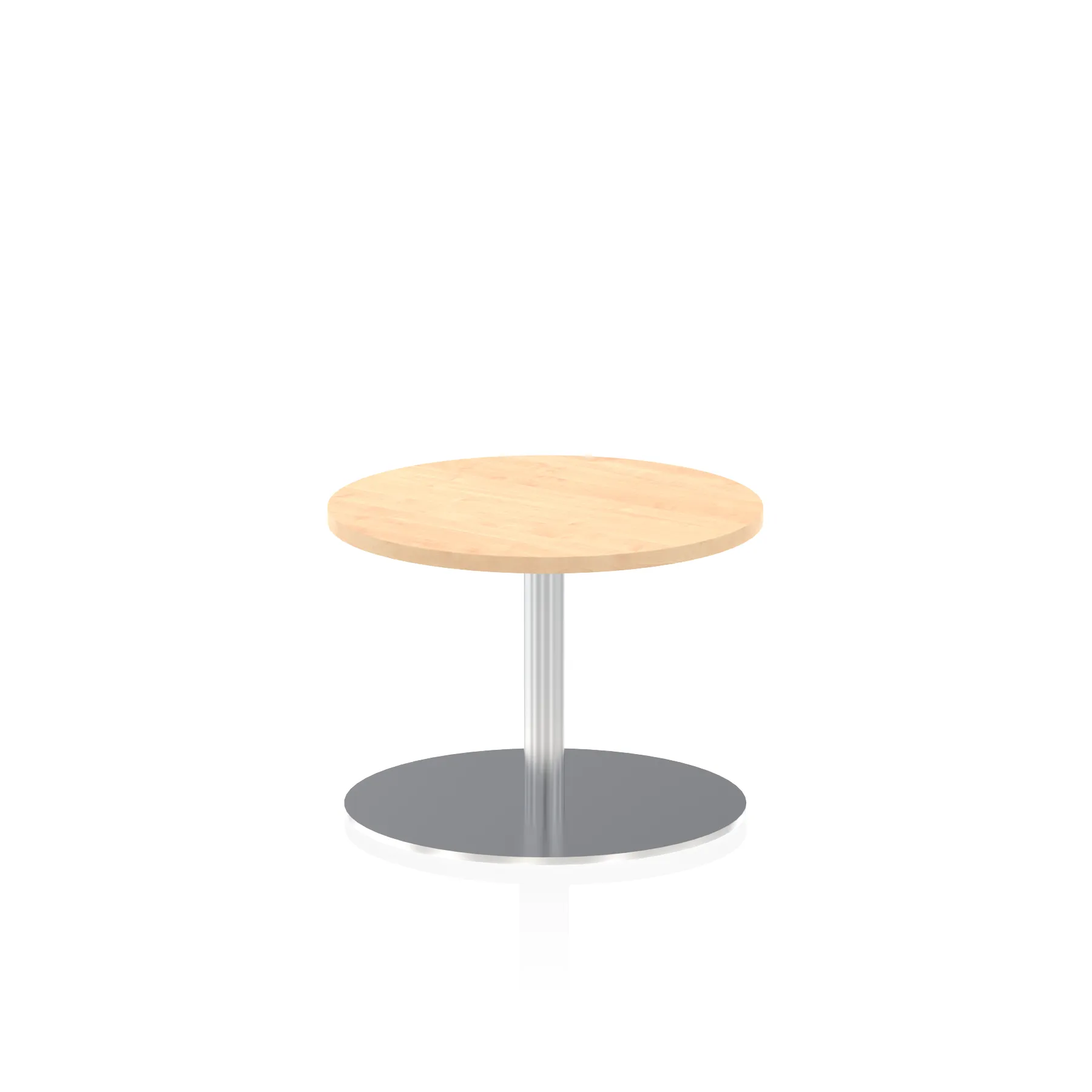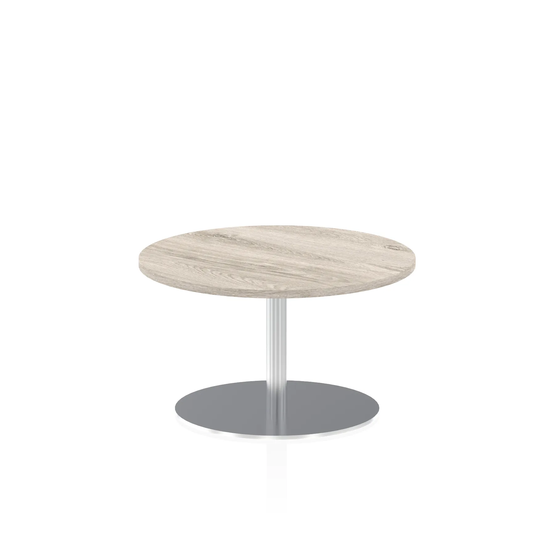 25mm thick desk top profile | Brushed stainless steel effect circular base (580mm diameter) | Brushed stainless steel pillars (76mm diameter) | Weighted base provides stability | Two part bolted frame system