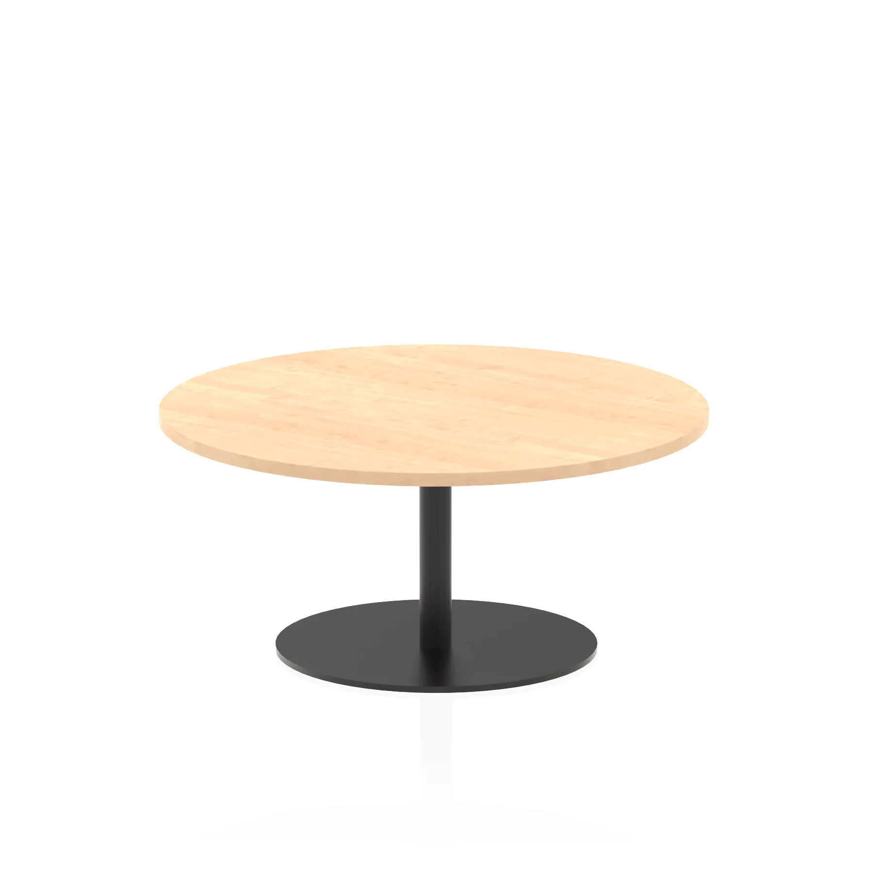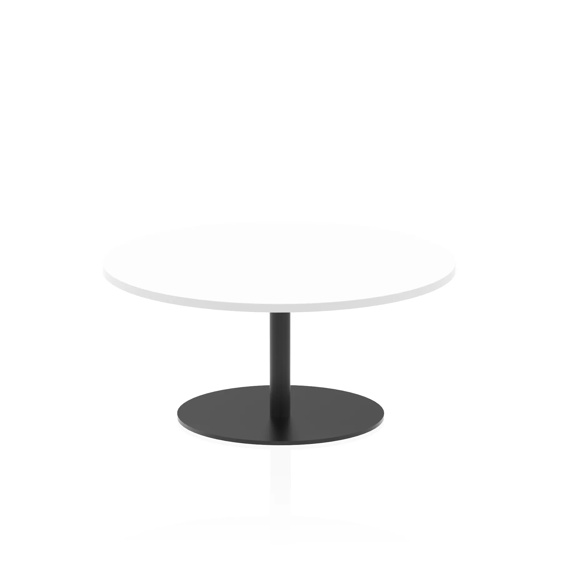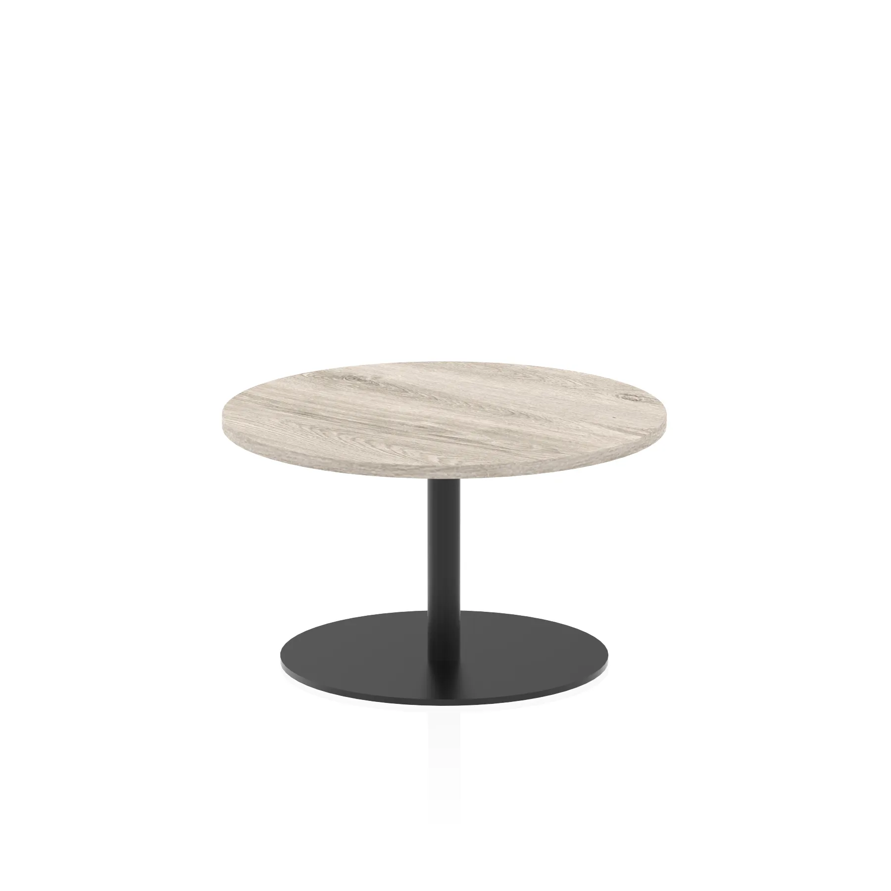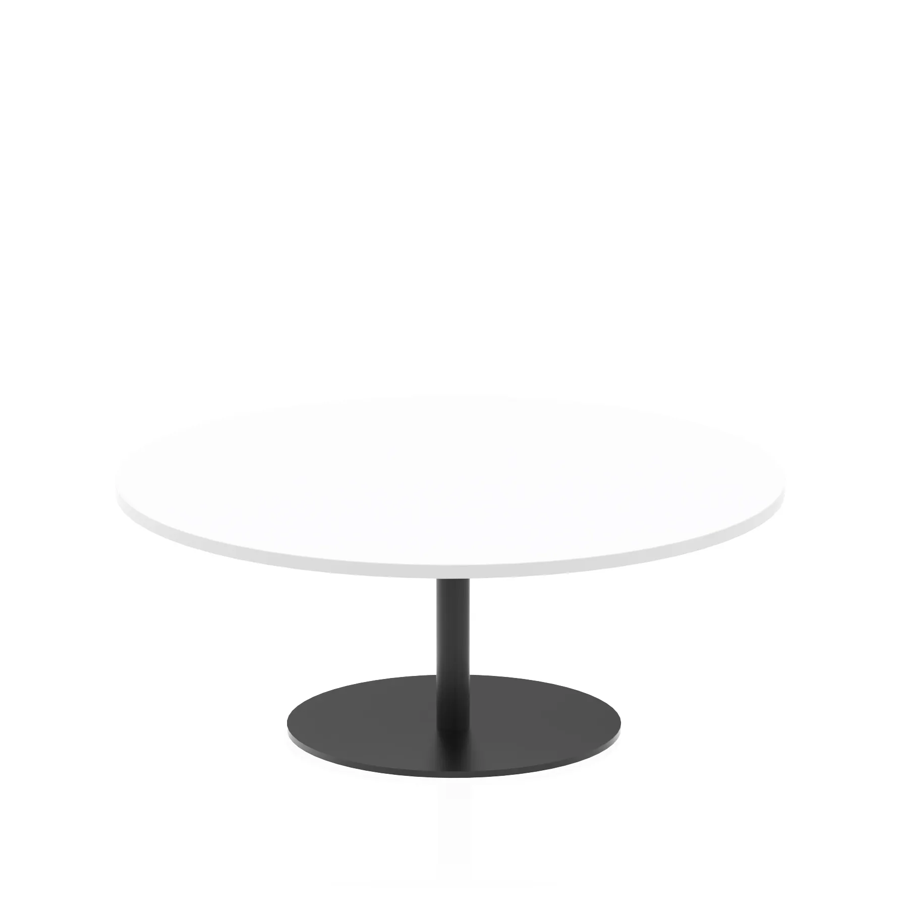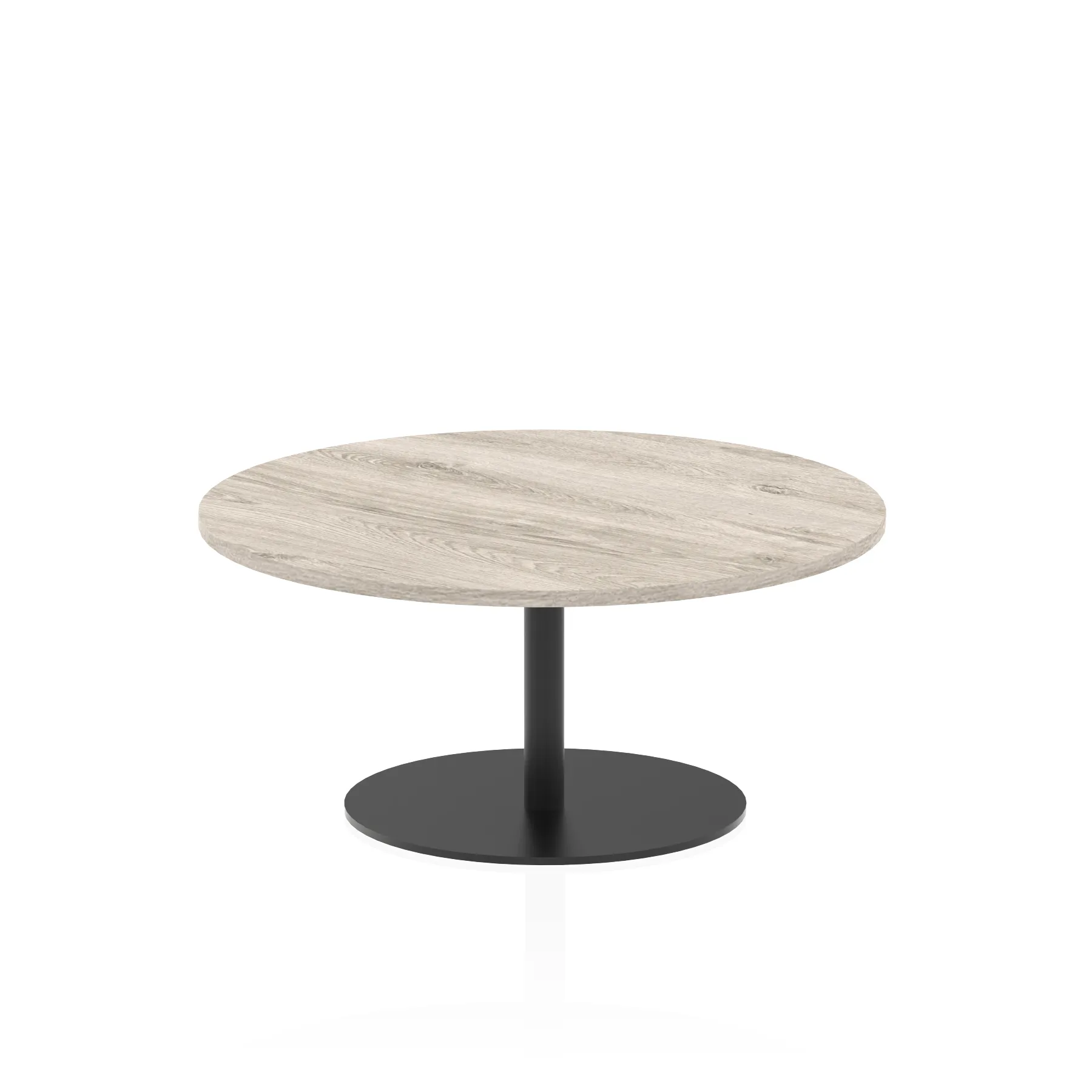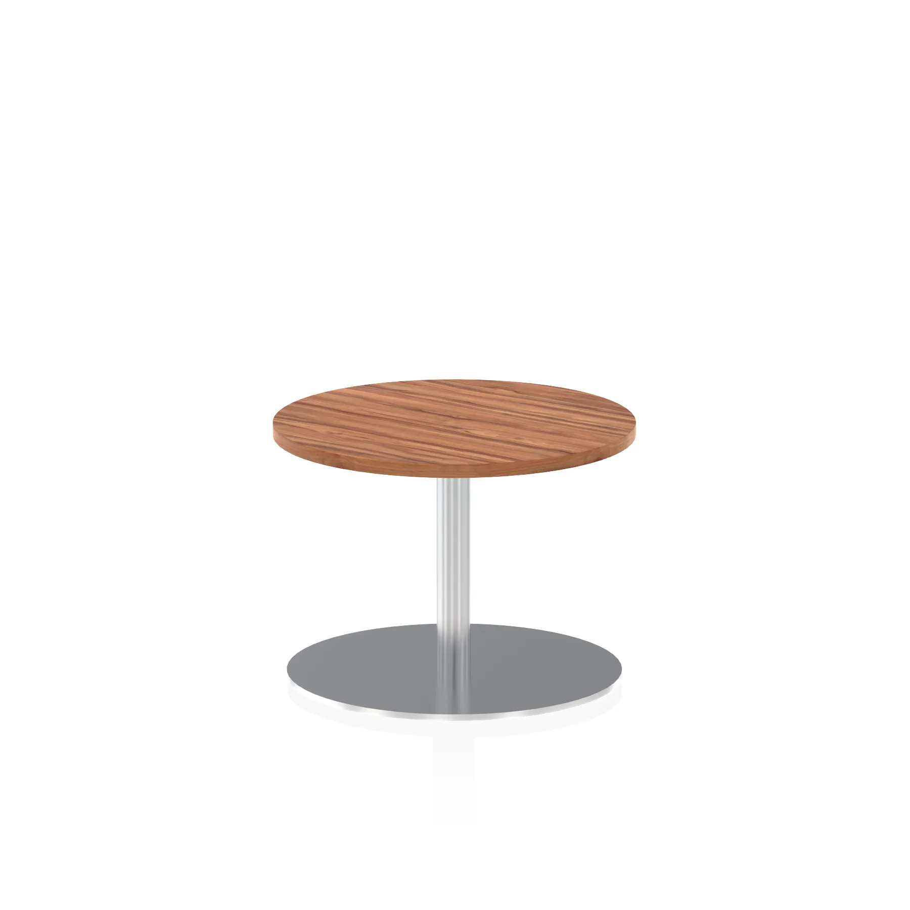 25mm thick desk top profile | Brushed stainless steel effect circular base (580mm diameter) | Brushed stainless steel pillars (76mm diameter) | Weighted base provides stability | Two part bolted frame system