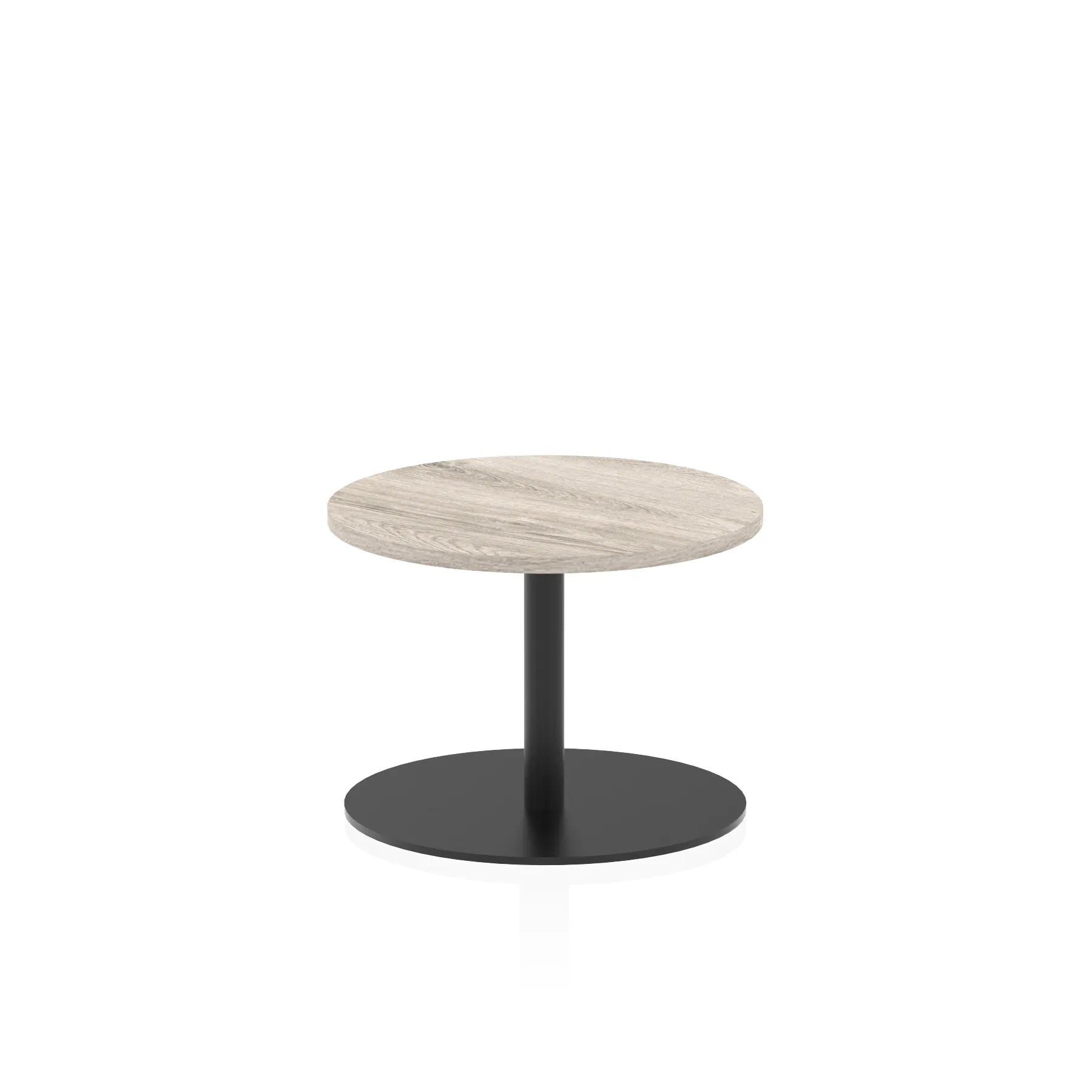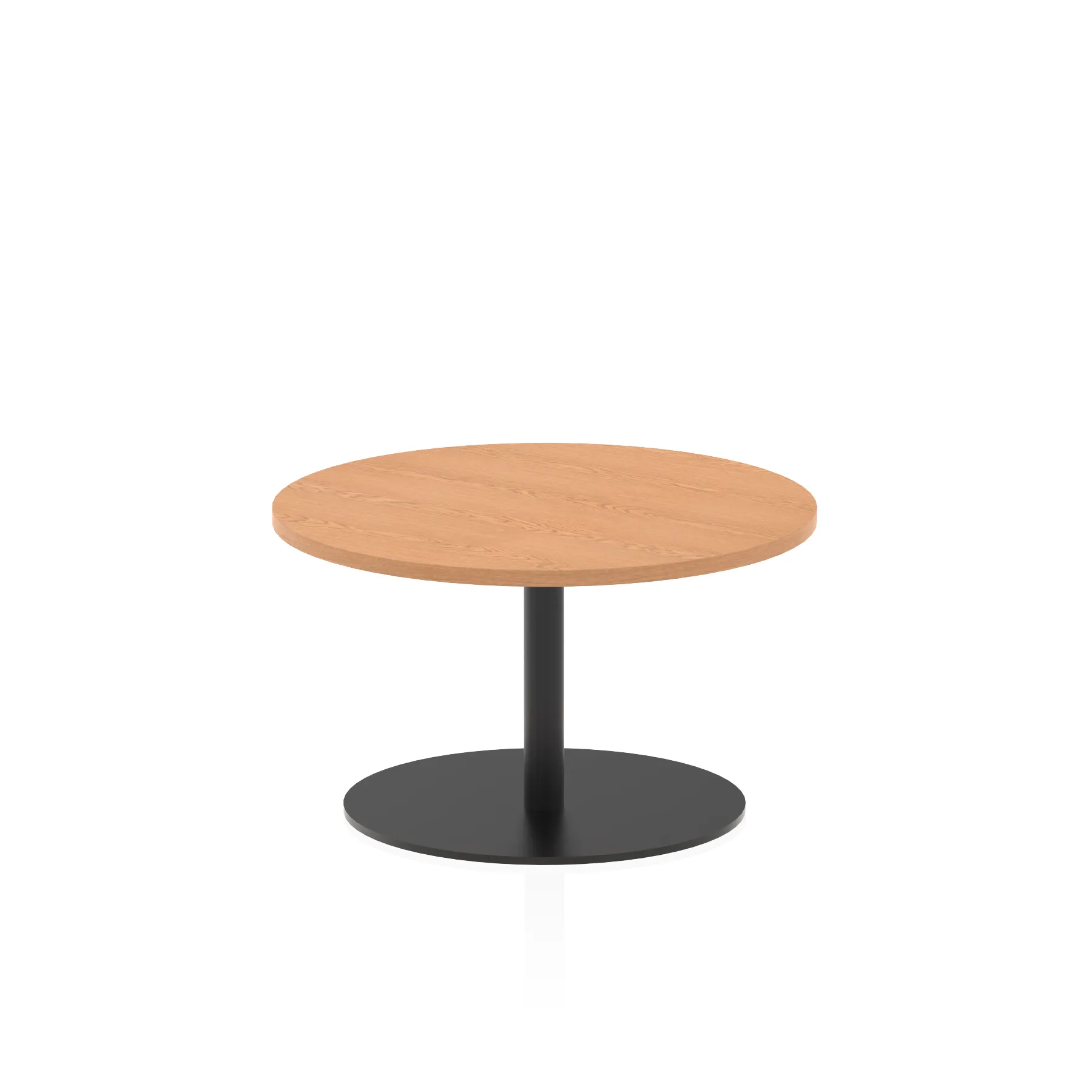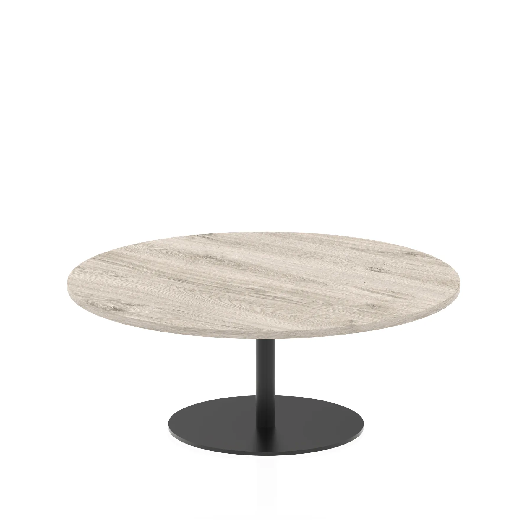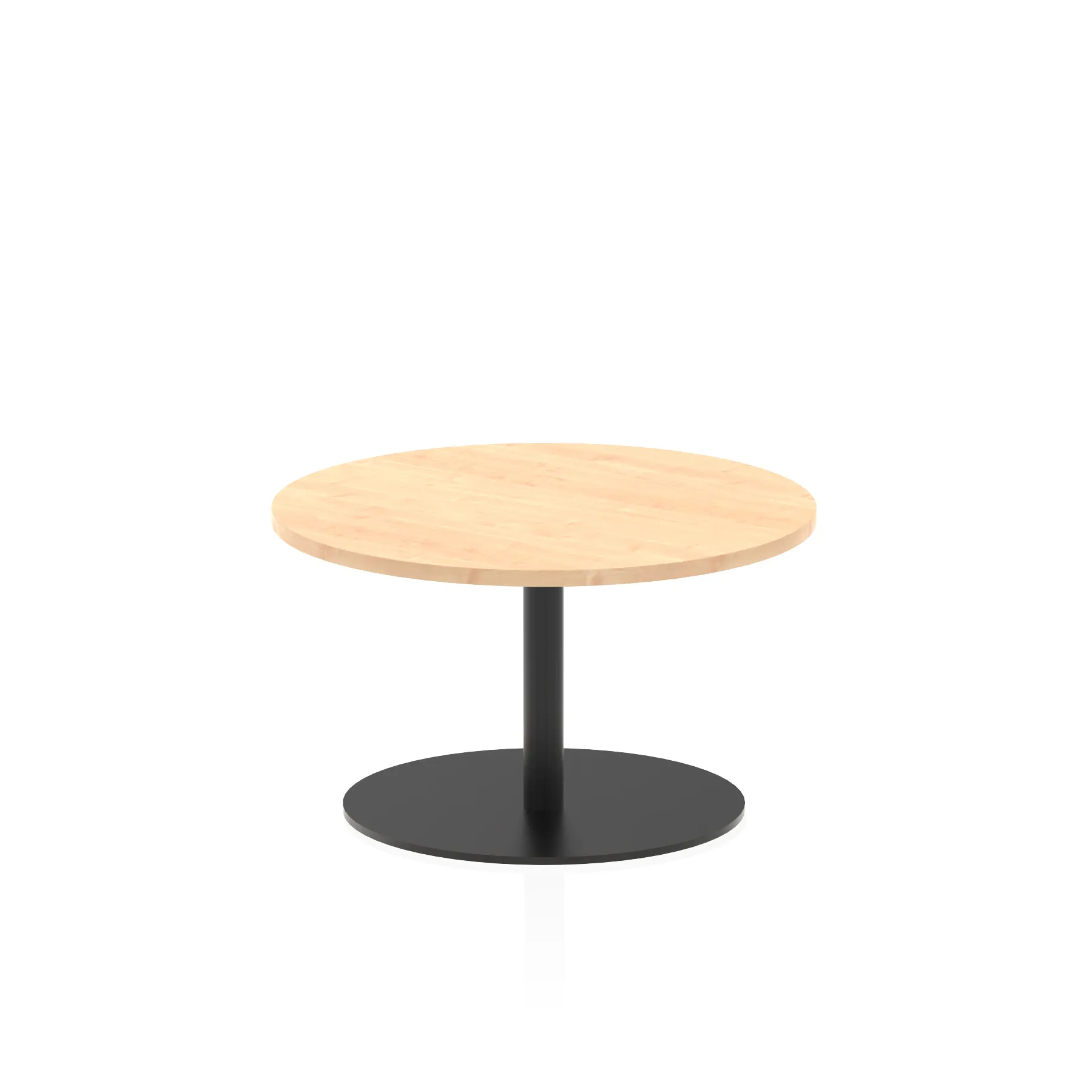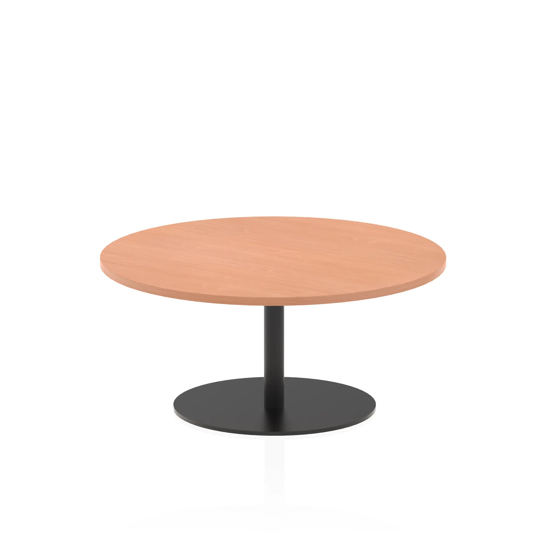 25mm thick desk top profile | Brushed stainless steel effect circular base (580mm diameter) | Brushed stainless steel pillars (76mm diameter) | Weighted base provides stability | Two part bolted frame system
