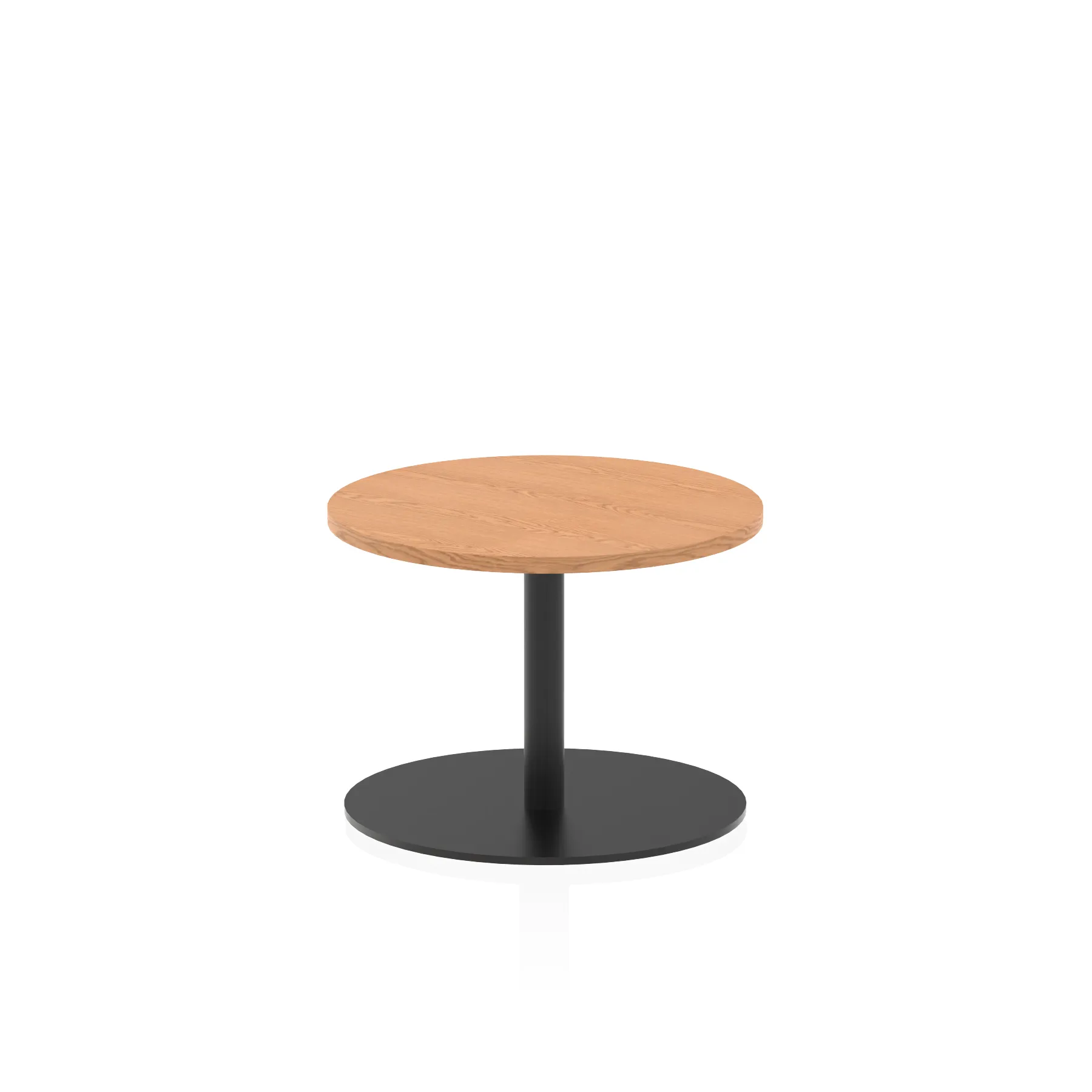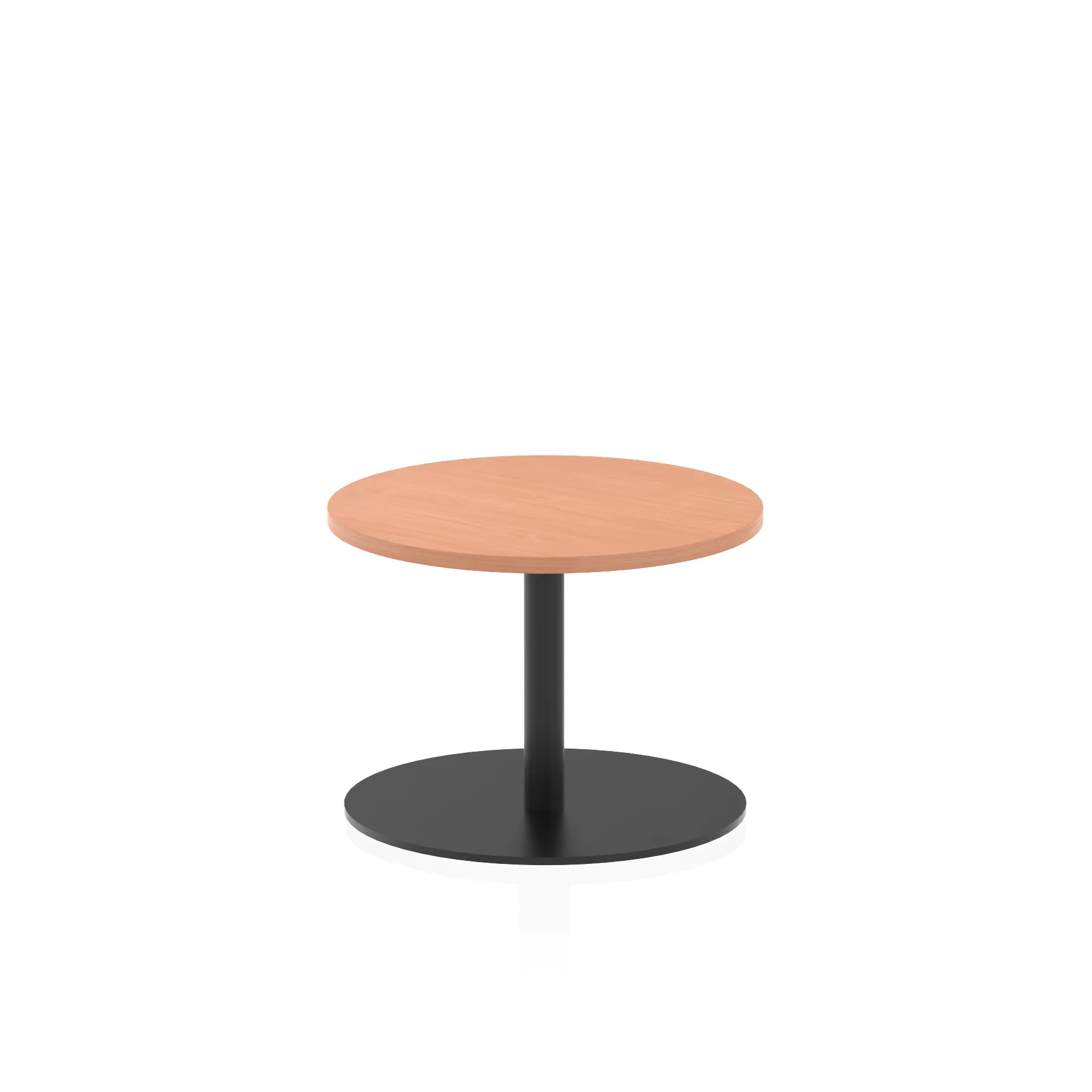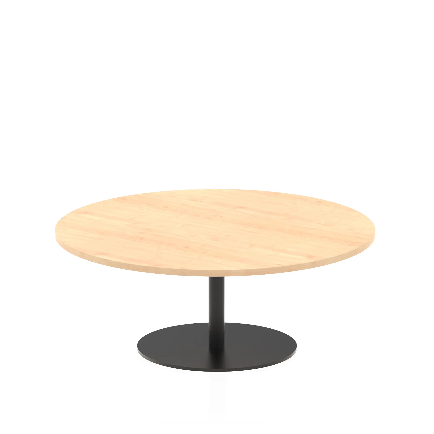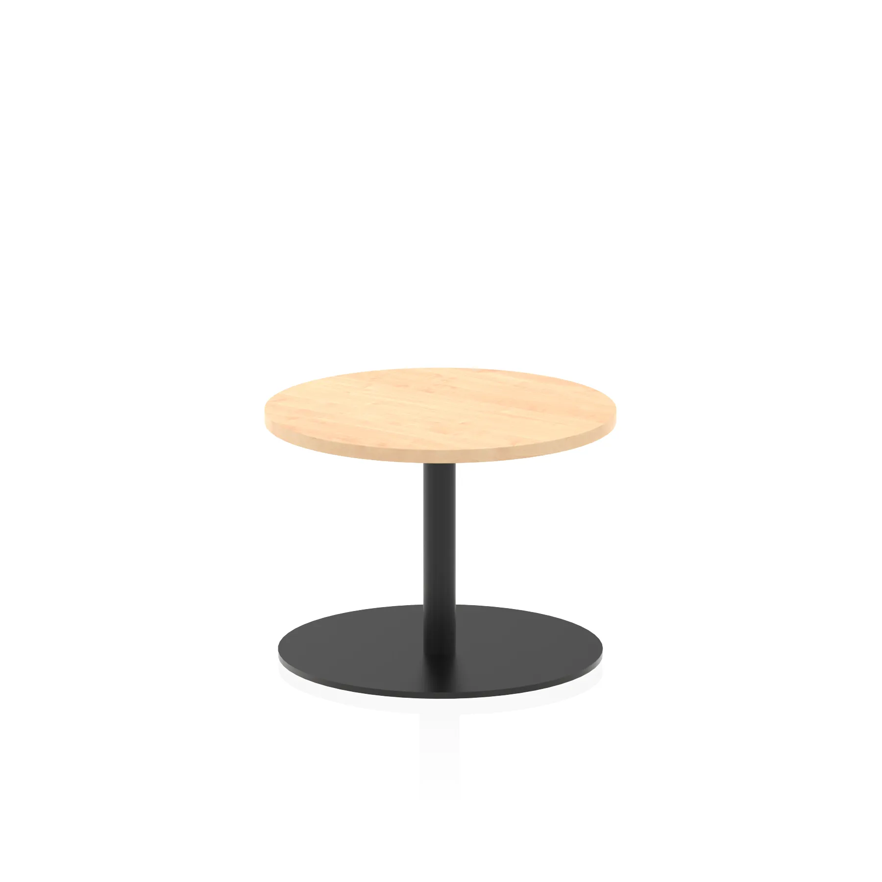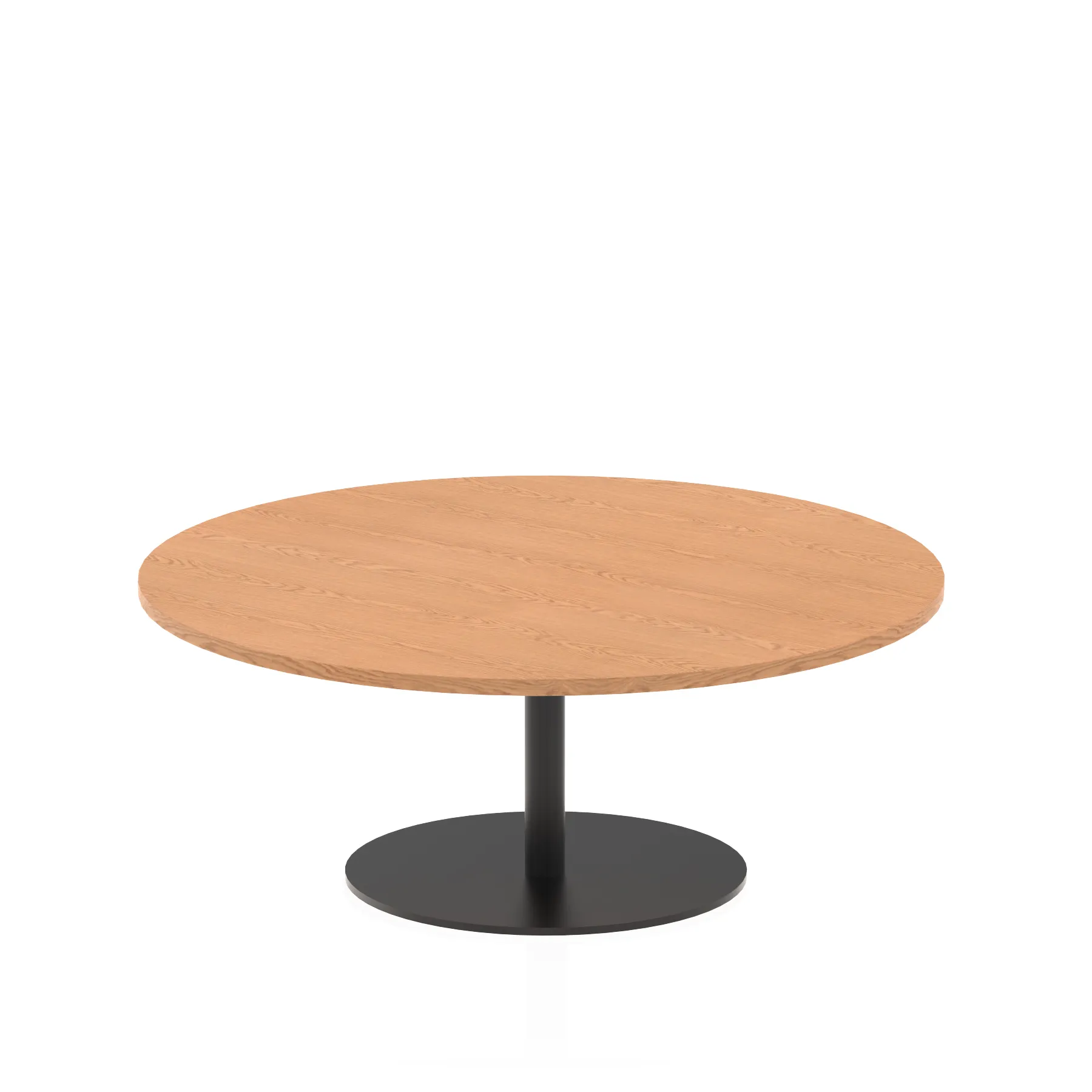 25mm thick desk top profile | Brushed stainless steel effect circular base (580mm diameter) | Brushed stainless steel pillars (76mm diameter) | Weighted base provides stability | Two part bolted frame system