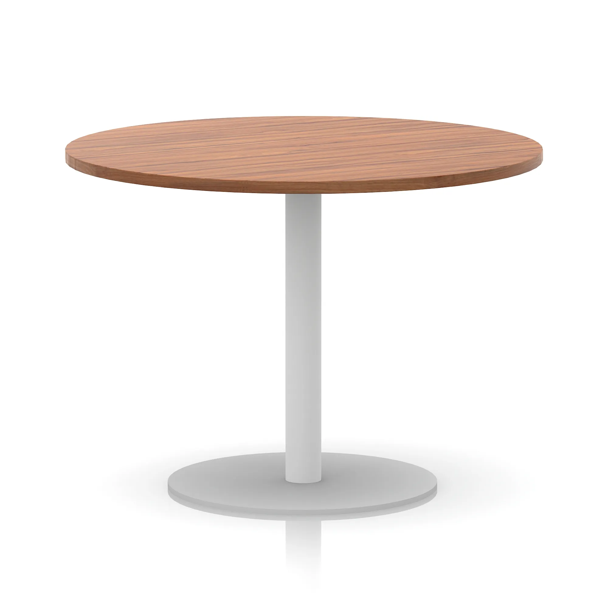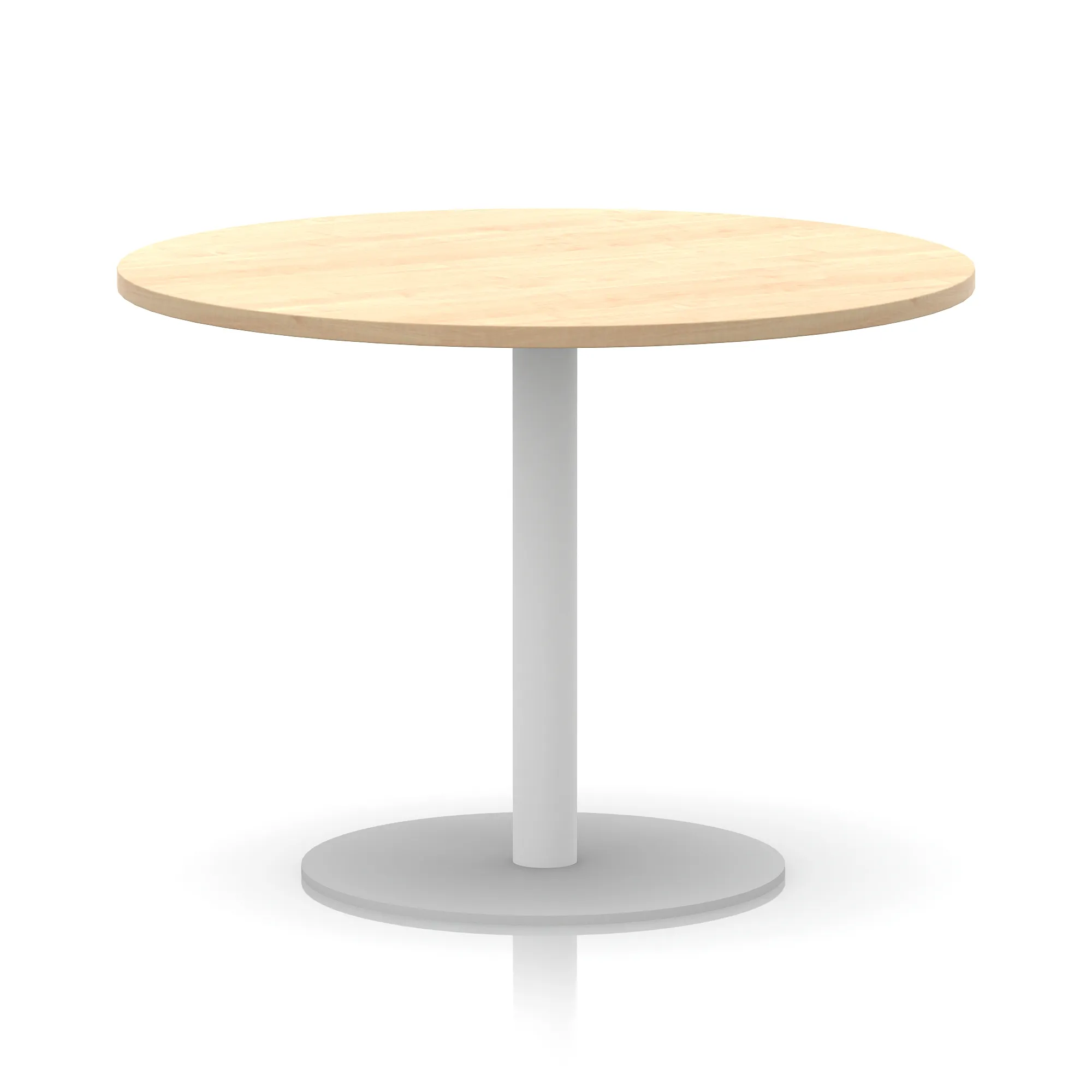 25mm thick desk top profile | Brushed stainless steel effect circular base (580mm diameter) | Brushed stainless steel pillars (76mm diameter) | Weighted base provides stability | Two part bolted frame system