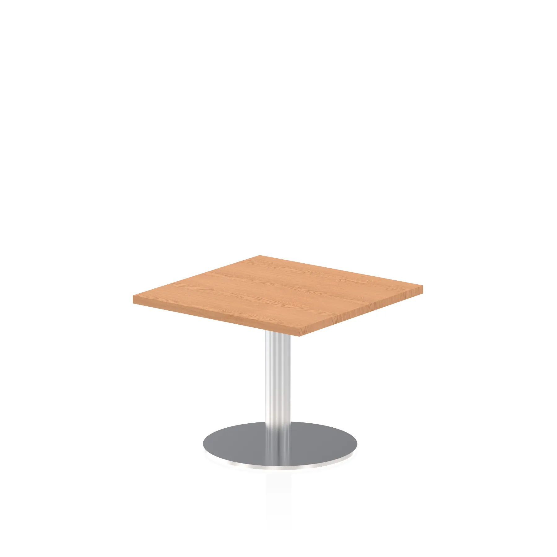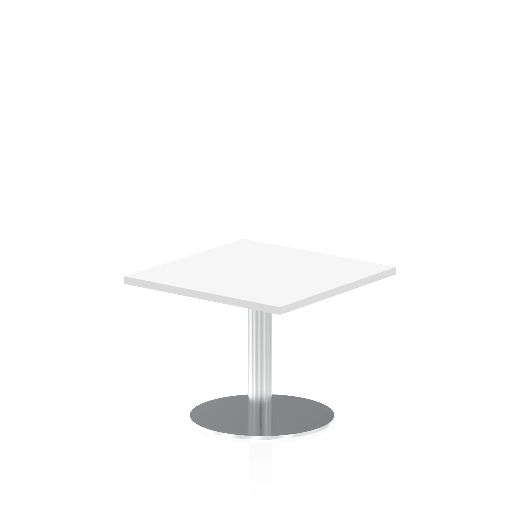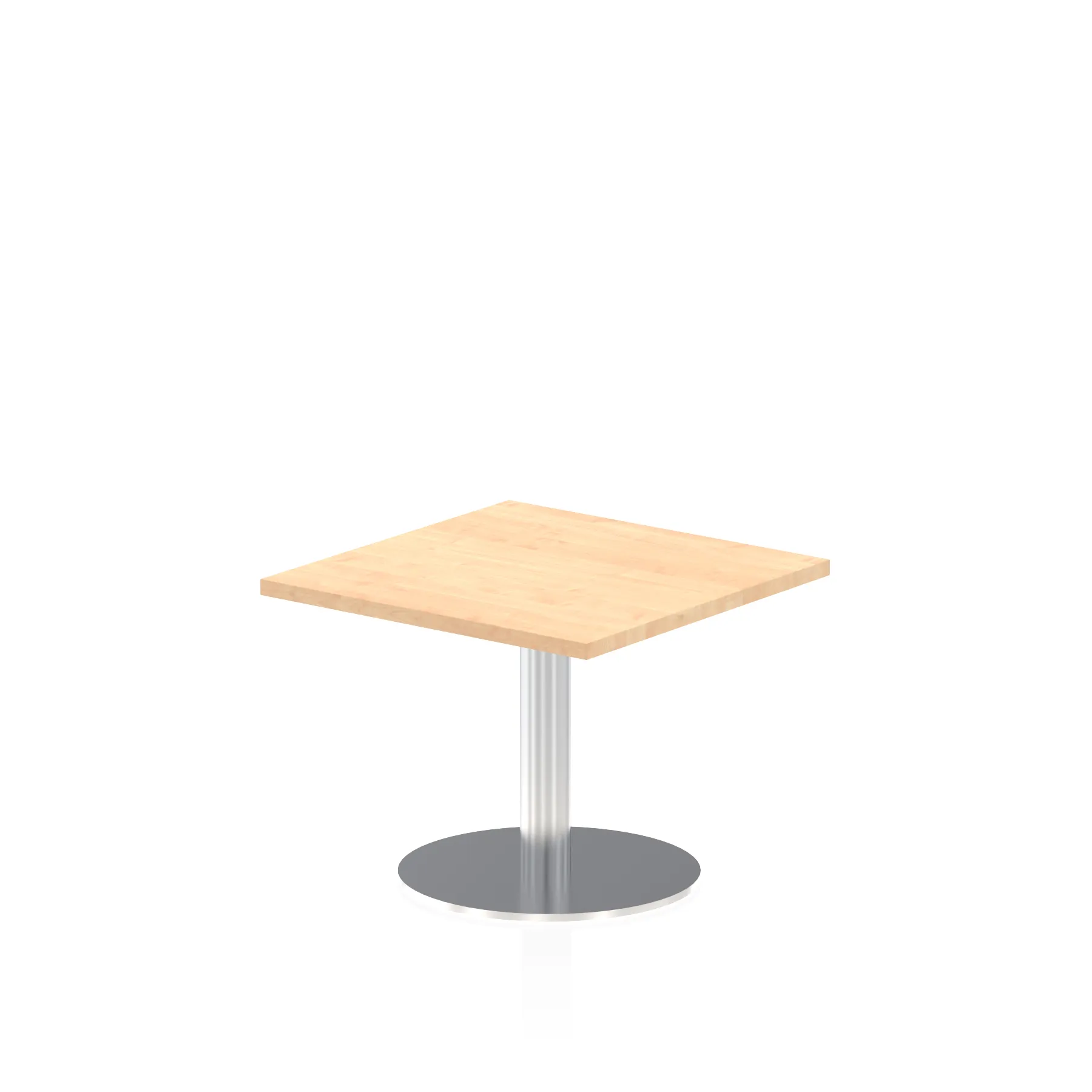 25mm thick desk top profile | Brushed stainless steel effect circular base (580mm diameter) | Brushed stainless steel pillars (76mm diameter) | Weighted base provides stability | Two part bolted frame system