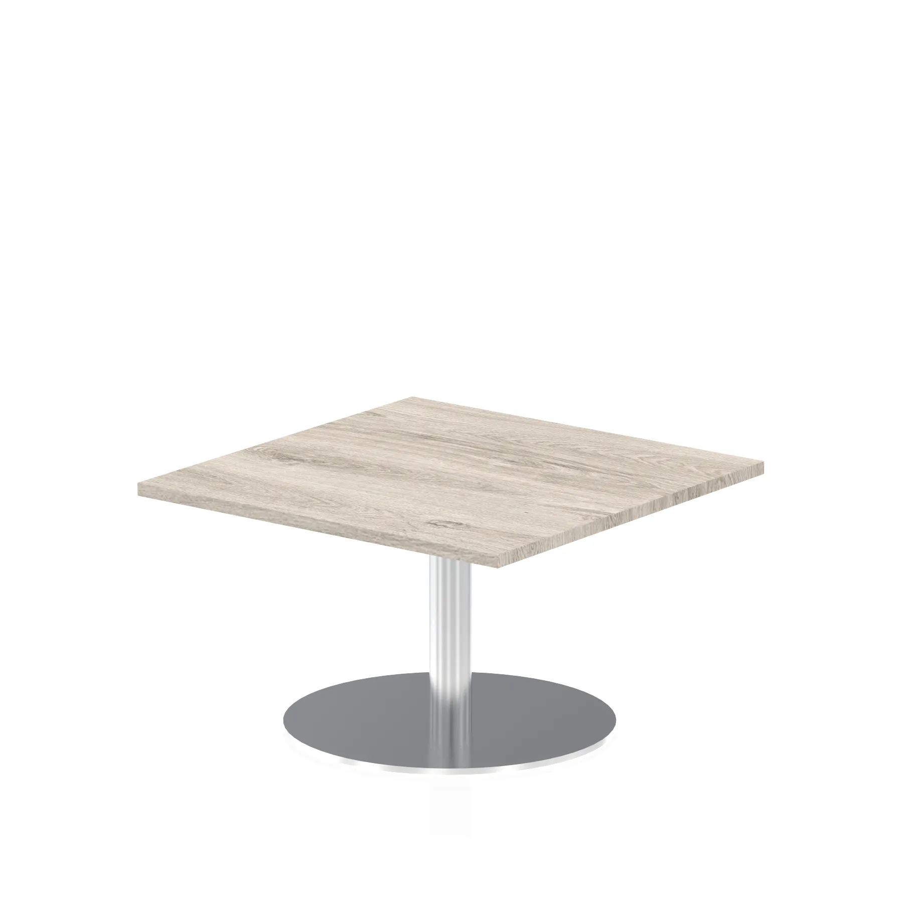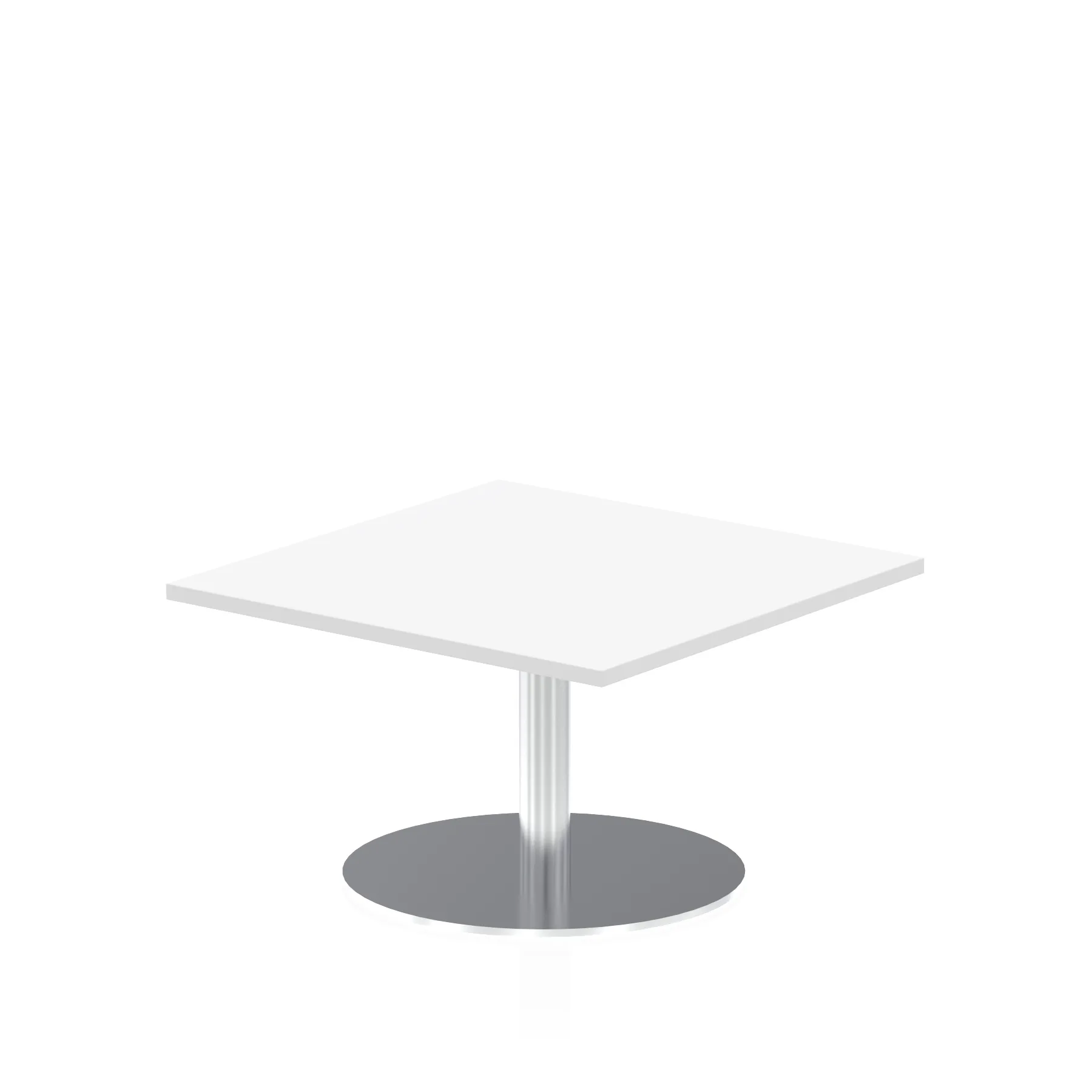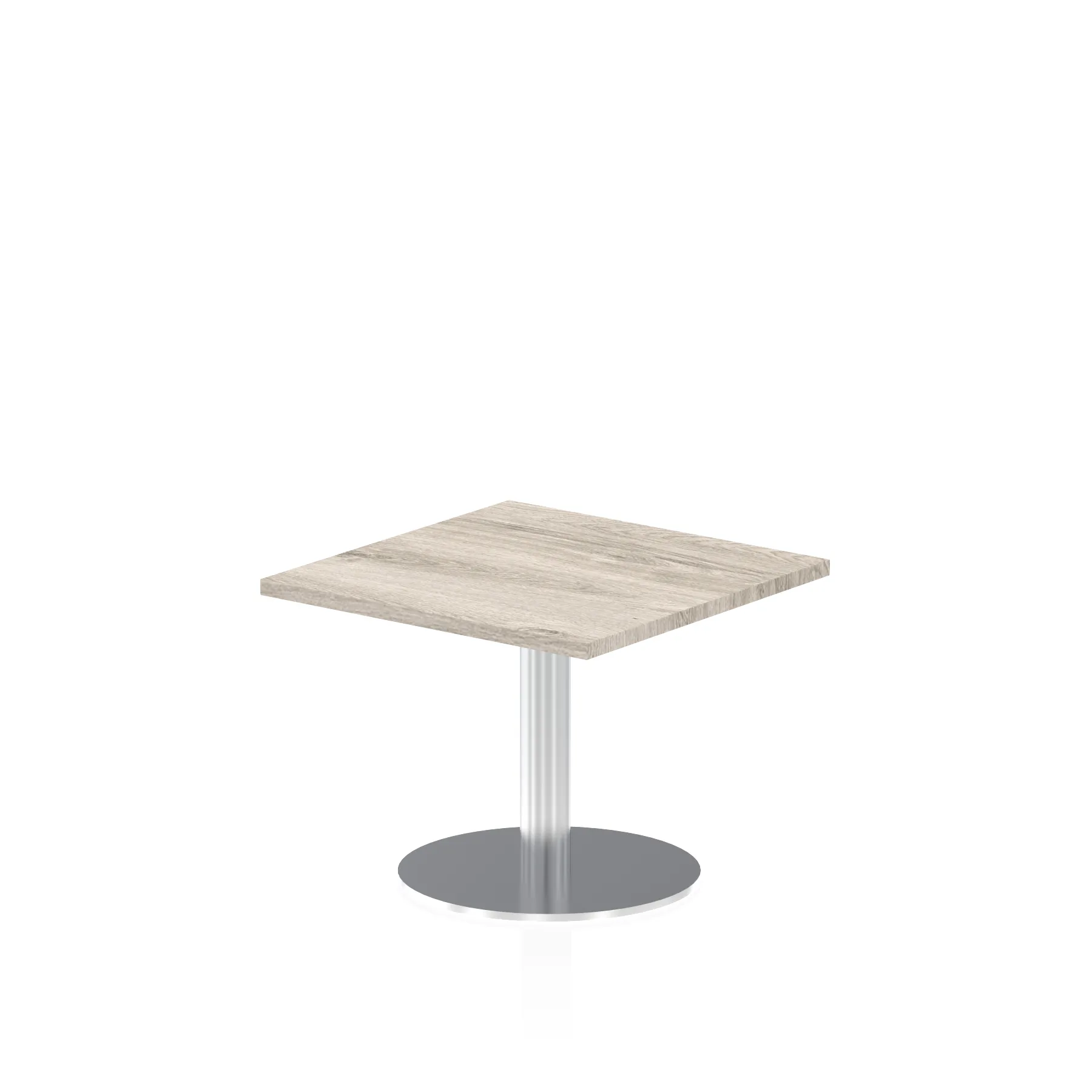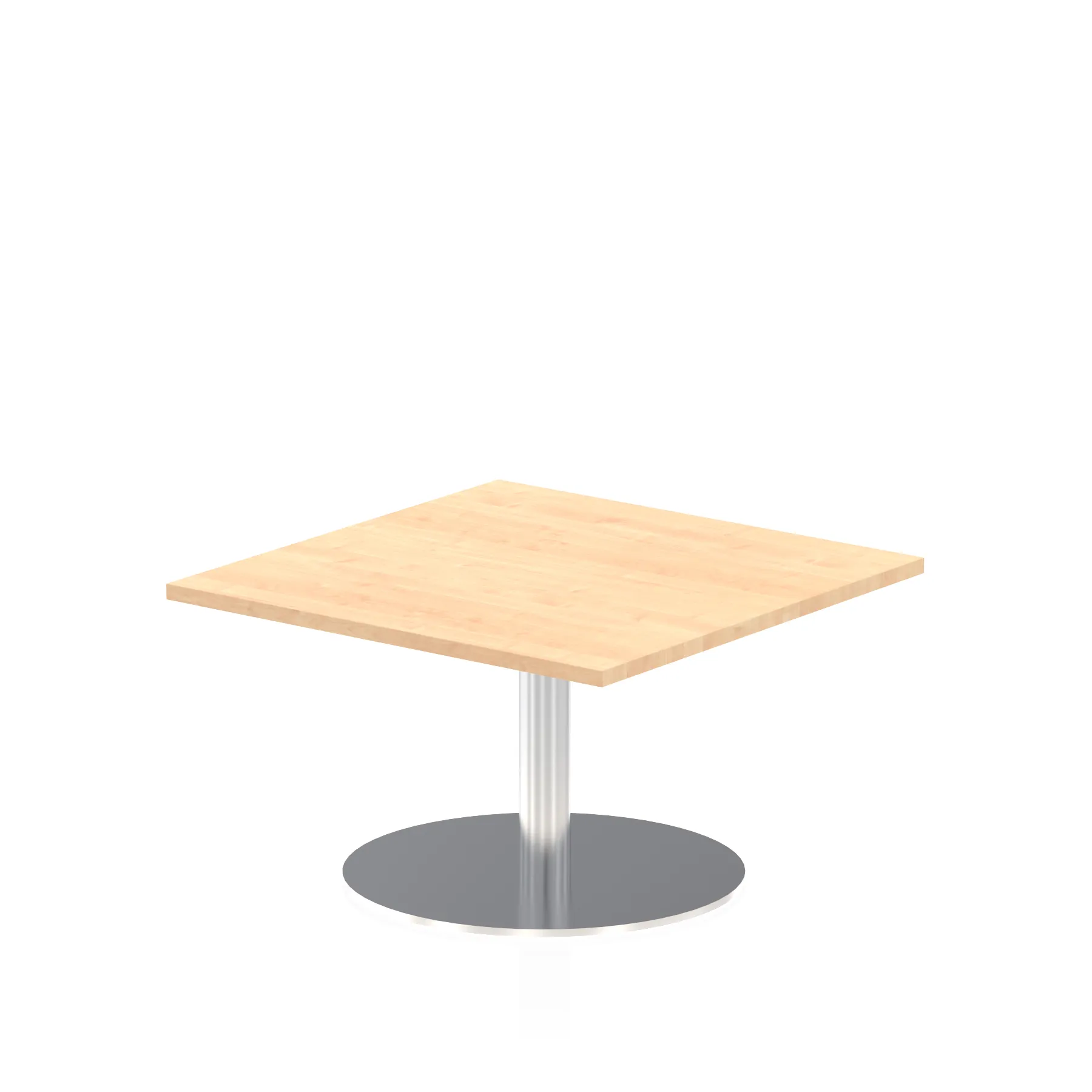 25mm thick desk top profile | Brushed stainless steel effect circular base (580mm diameter) | Brushed stainless steel pillars (76mm diameter) | Weighted base provides stability | Two part bolted frame system