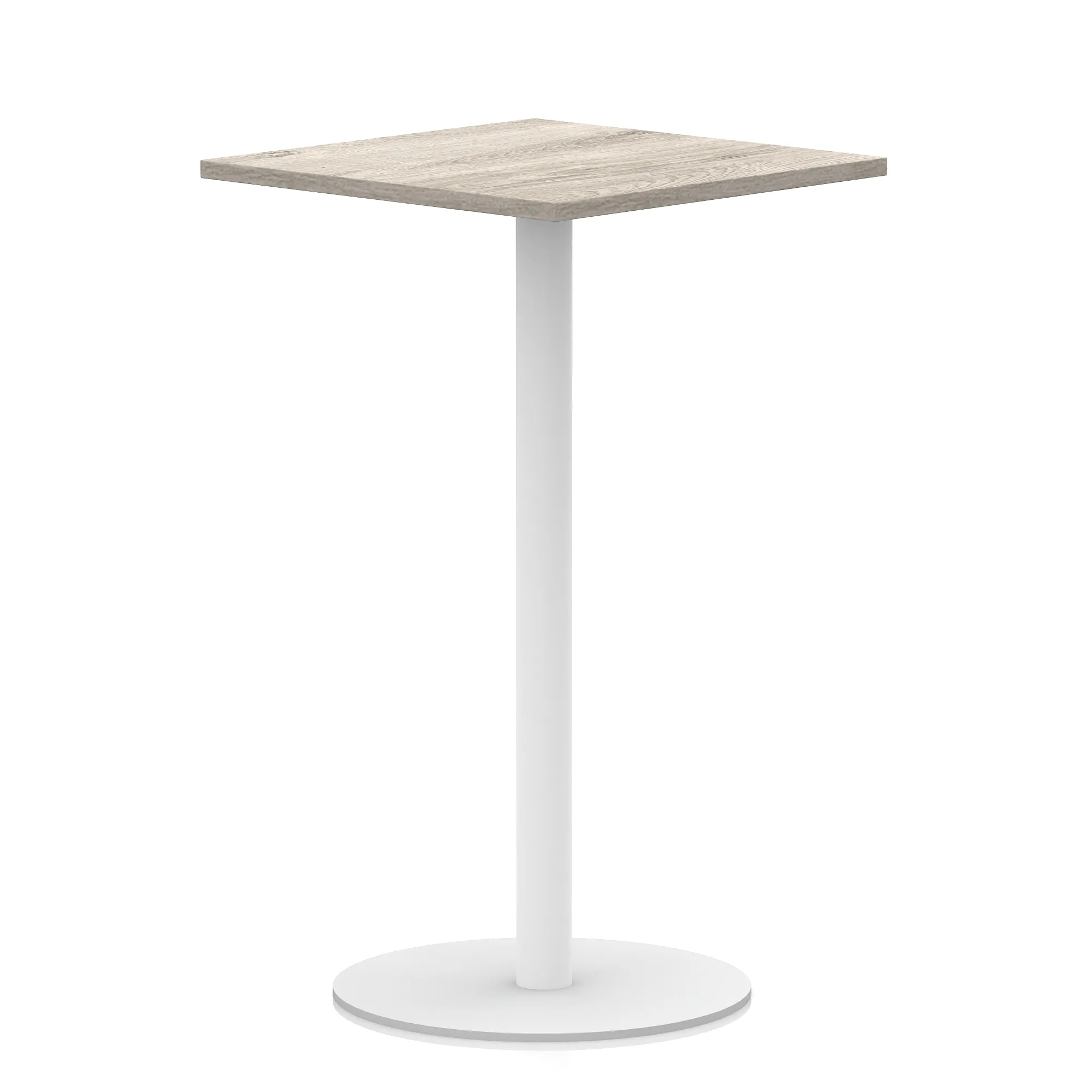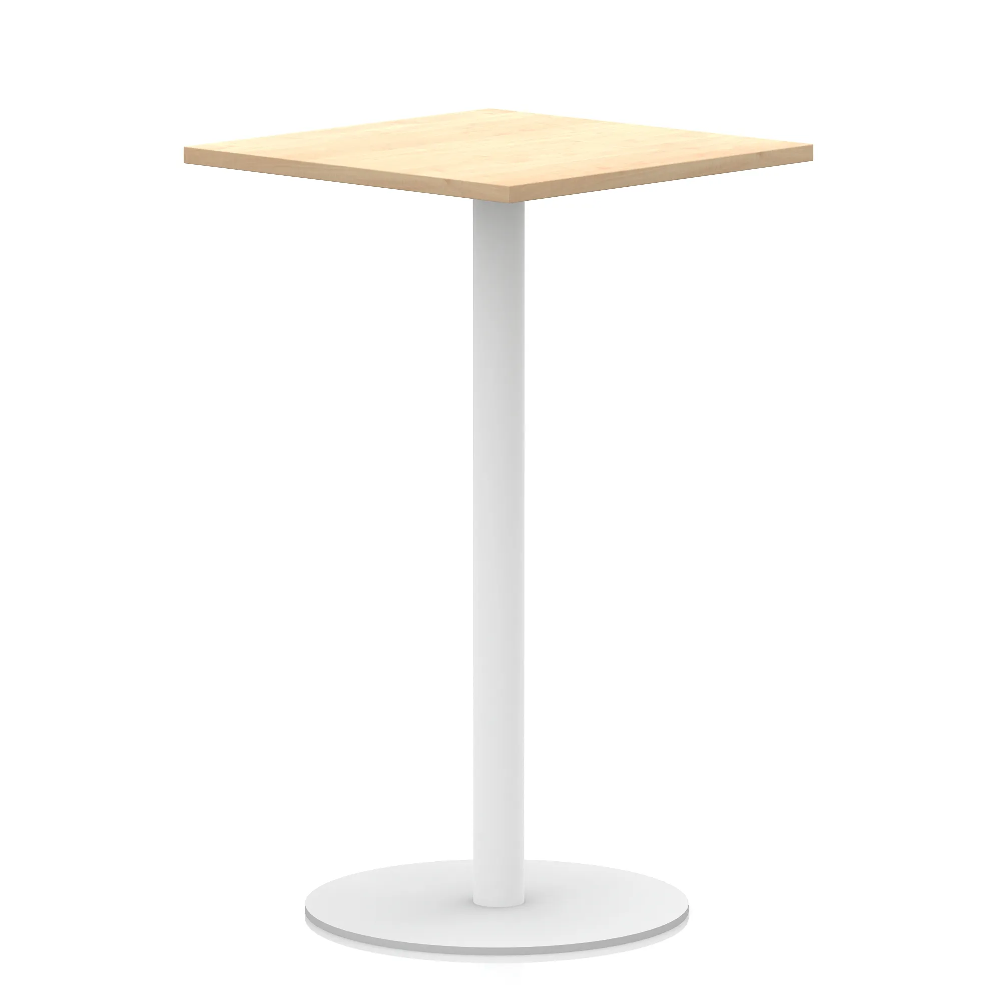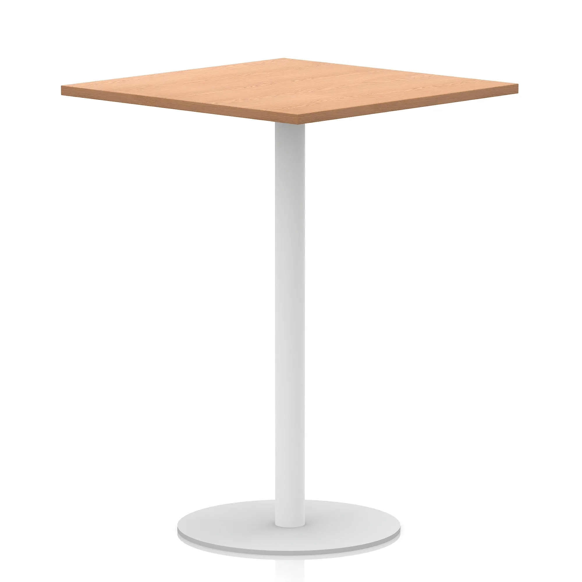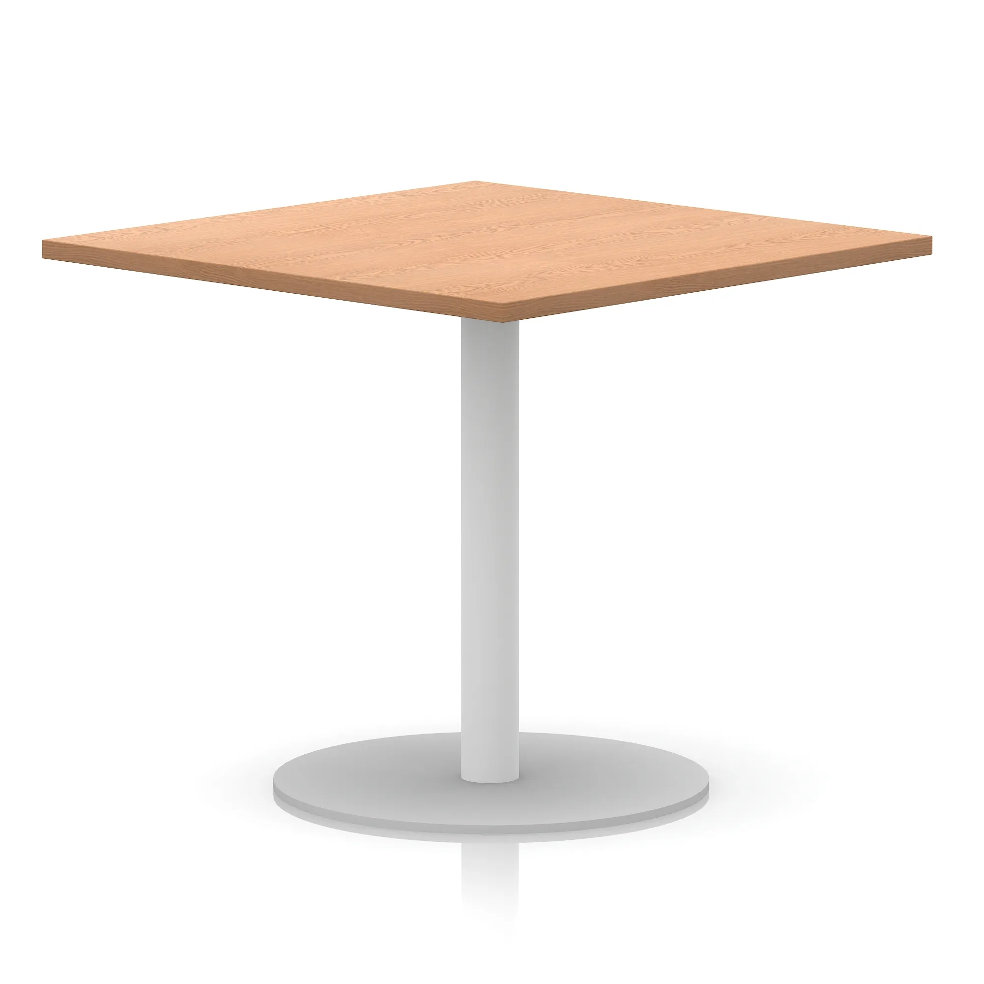 25mm thick desk top profile | Brushed stainless steel effect circular base (580mm diameter) | Brushed stainless steel pillars (76mm diameter) | Weighted base provides stability | Two part bolted frame system