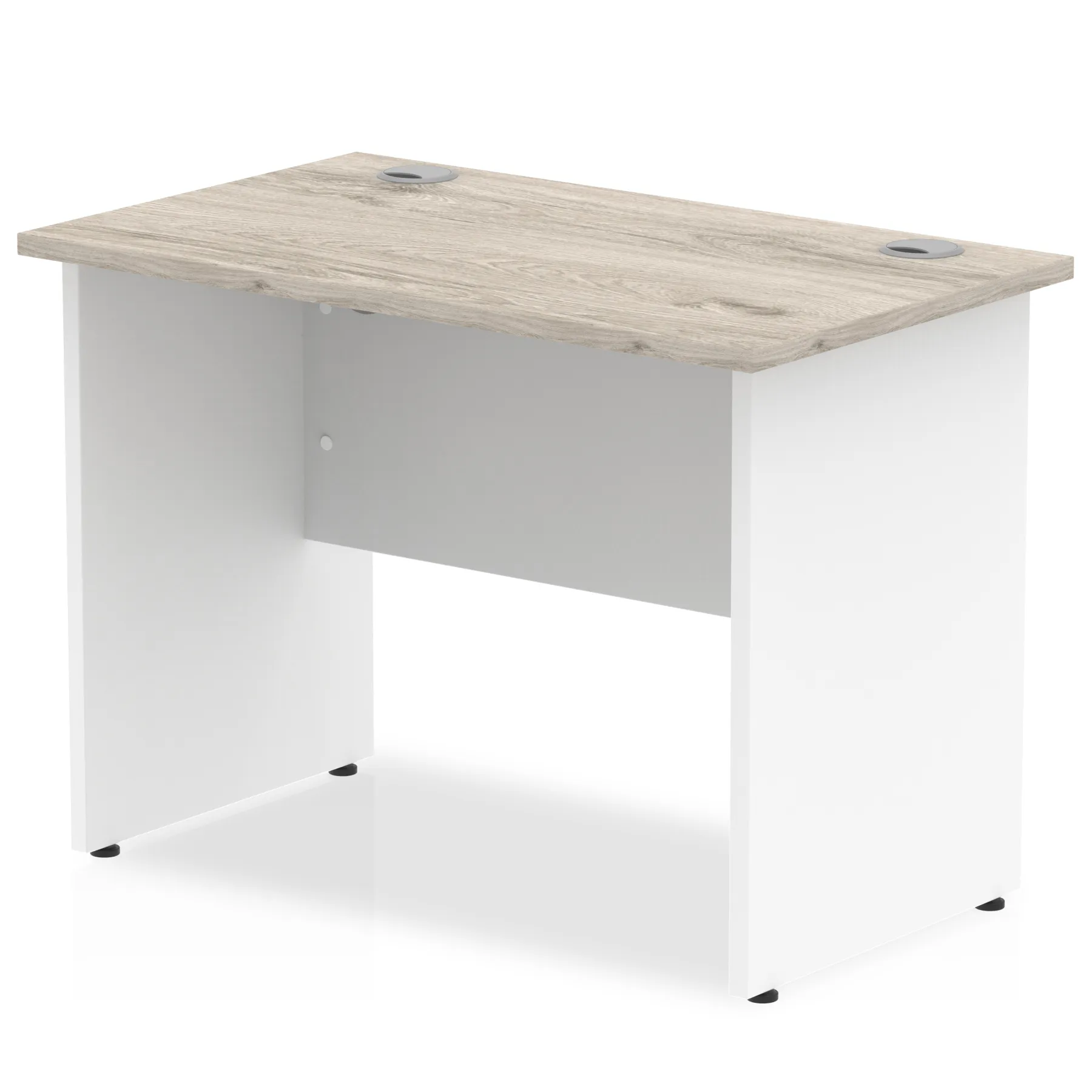 Impulse contract desk | 25mm tops | Heat resistant melamine finish | 18mm modesty panels | 2mm protective abs edging | Panel end legs | 2 cable ports | Height adjustable feet | Steel to steel fixings | 2 modesty panels slots | Deep set modesty panel (5″) allows for compatibility of most screen clamp fittings | Weight Capacity 135Kg
