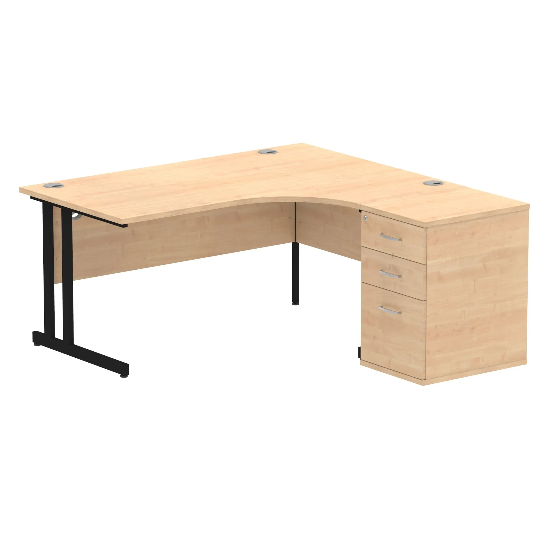 • Impulse contract workstation • 25mm tops • Desk and pedestal combined • Heat resistant melamine finish • 18mm modesty panel • 2mm protective abs edging • Double strut legs • Multiple cable ports • Height adjustable feet • Steel to steel fixings • Modesty panel slots wire slots • Deep set modesty panel (5″) allows for compatibility of most screen clamp fittings • Deep set modesty panel (5″) allows for compatibility of most screen clamp fittings