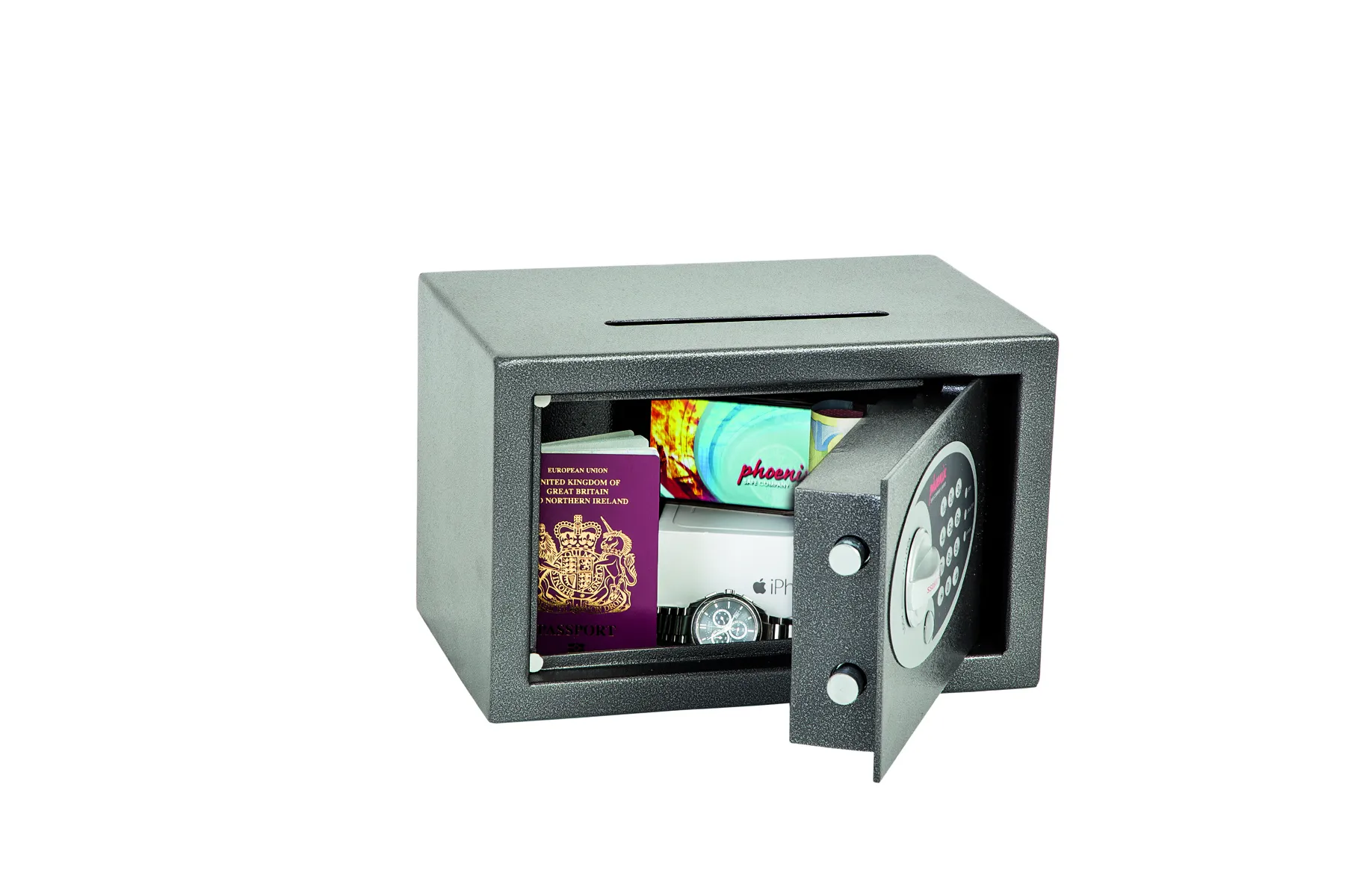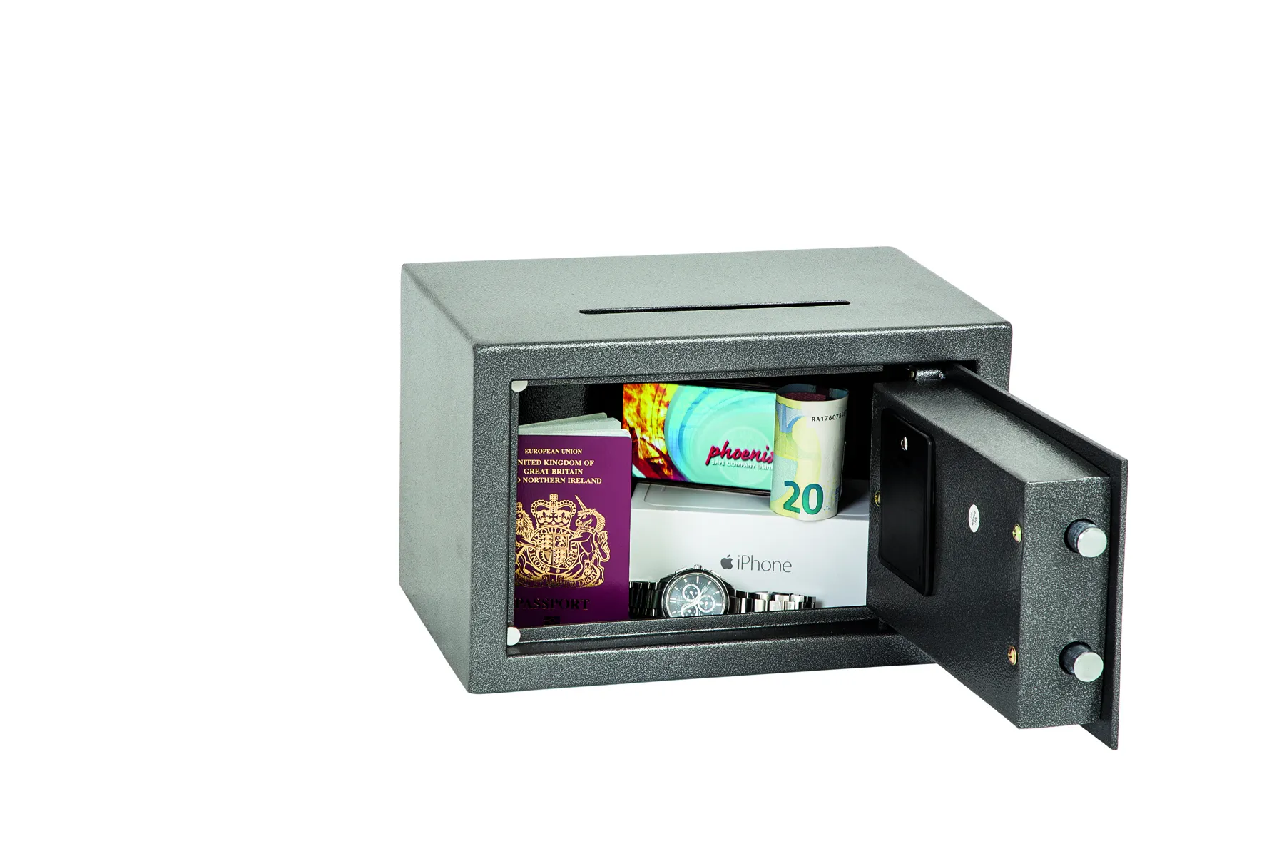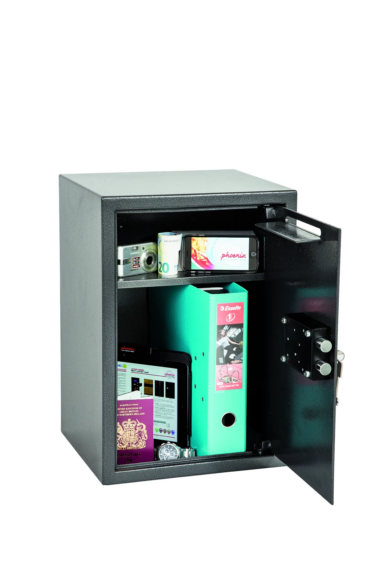 THE PHOENIX VELA DEPOSIT is designed for use at home or in the office for storage of valuables, cash and important documents. With its high quality user friendly electronic lock it is ideal for multiple applications.