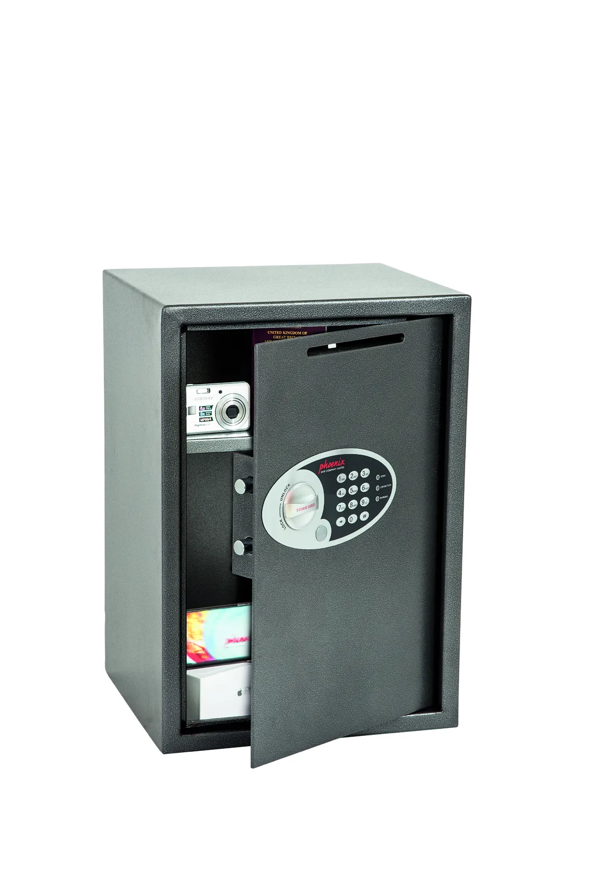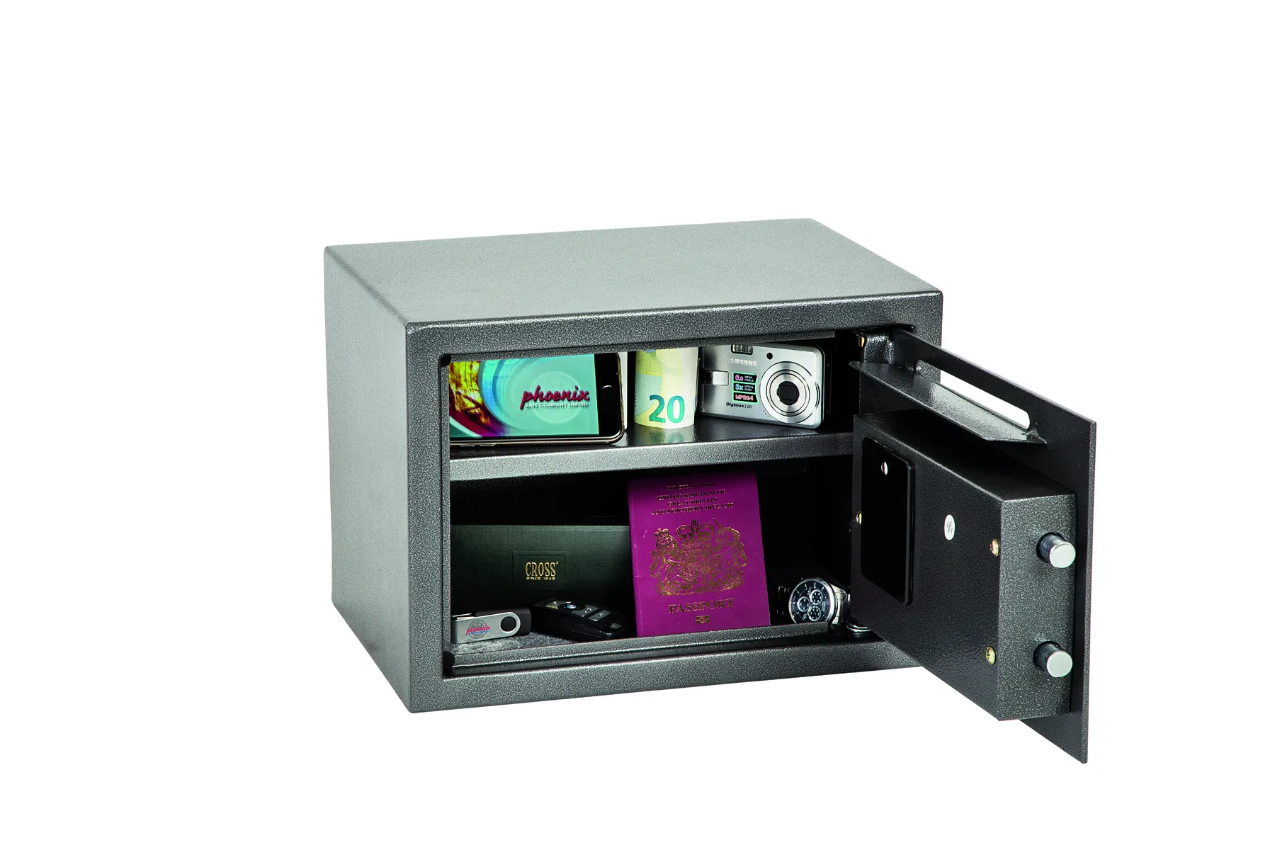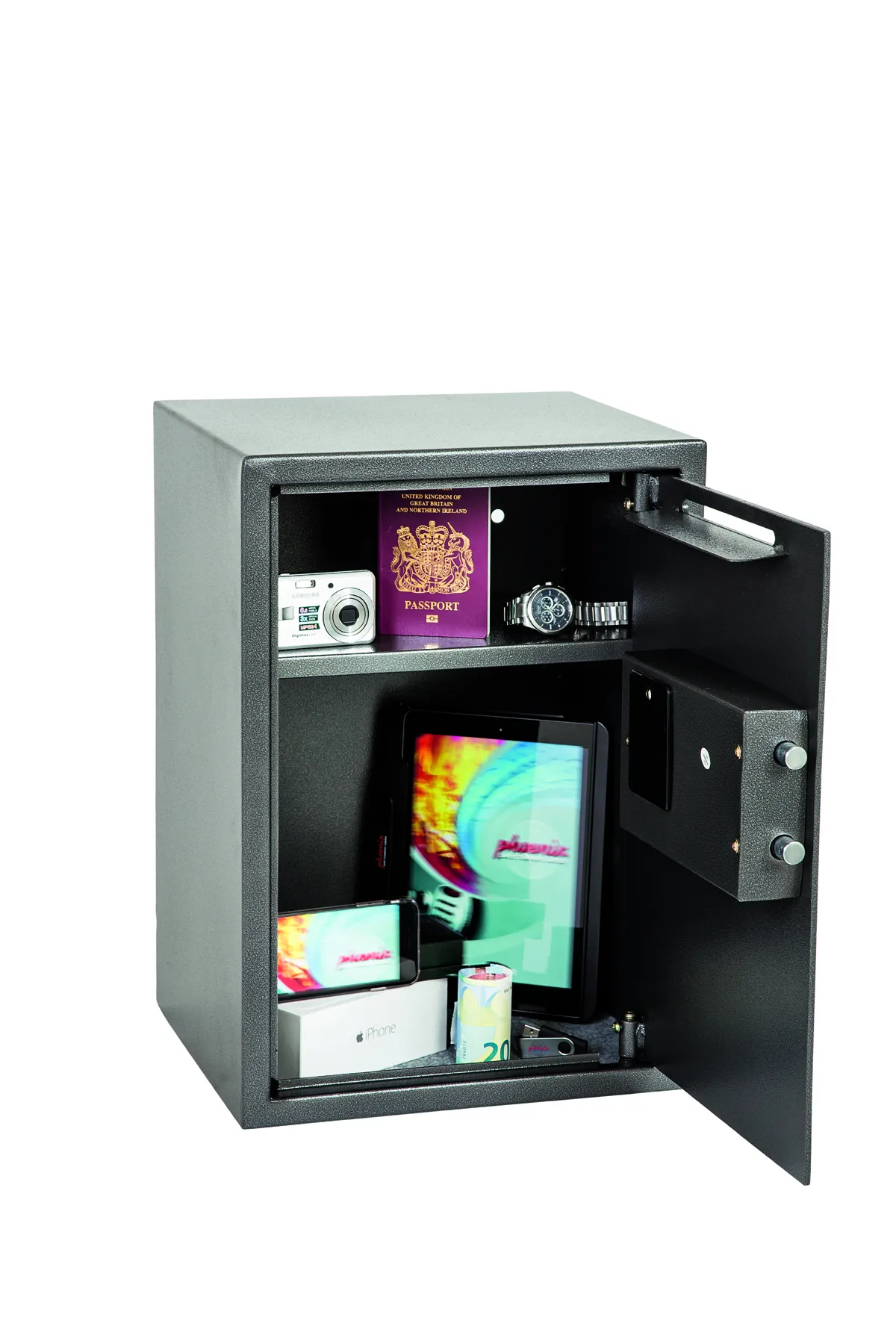 THE PHOENIX VELA DEPOSIT is designed for use at home or in the office for storage of valuables, cash and important documents. With its high quality user friendly electronic lock it is ideal for multiple applications.